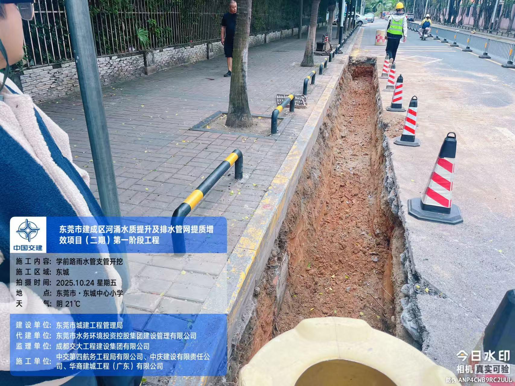 尊敬的市民,您好!您反映的问题已收悉,现回复如下: 收到反映的情况后,我们于2025年10月12日15:11对诉求进行办理,由于您的电话号为空号无法接通,我们未能与您取得联系。您反映问题的工程为东莞市水务环境投资控股集团建设管理有限公司(下称“建设公司”)负责代建管理的东莞市建成区河涌水质提升及排水管网提质增效项目(二期)第一阶段-东城街道,施工单位为中交第四航务工程局有限公司、粤府建工集团有限公司、中庆建设有限责任公司。 经核实,该区域是解决东城中心小学门口内涝问题实施相关排水管网改造工程,未及时恢复是因为东城小学开学时段不允许施工,导致工期延迟。施工单位已于2025年10月1日将该路段全部封闭进行施工。目前该路段已部分开放施工区域,施工基坑铺设钢板保证市民通行。同时施工单位已铺设防尘网以减低扬尘。预计2025年10月31日前完成施工全面恢复通行。 如有疑问,欢迎致电水务环境集团24小时客服热线96968,感谢您对我们工作的理解和支持!