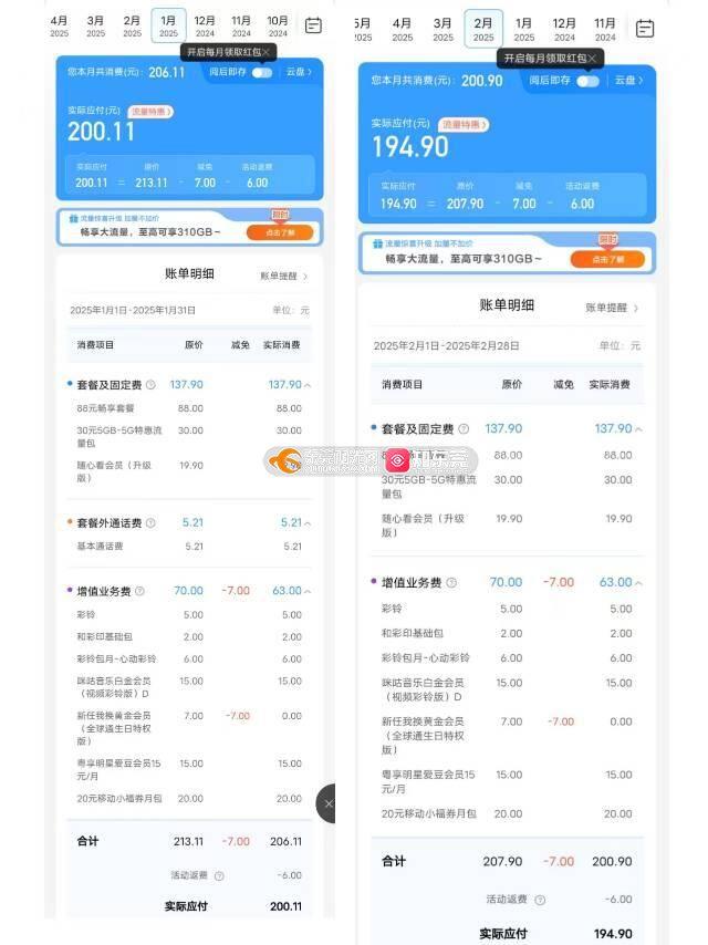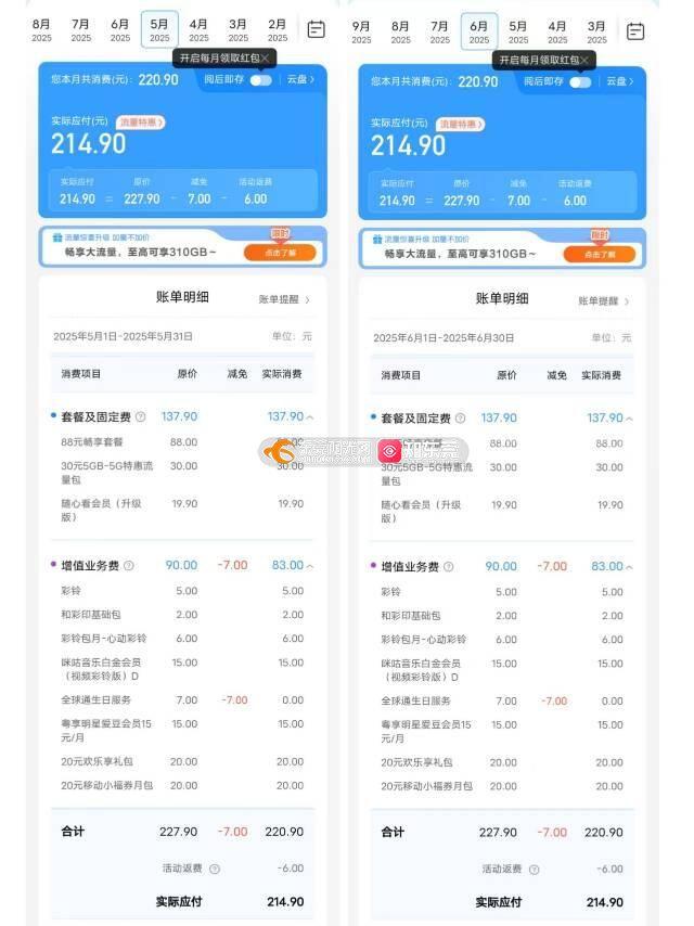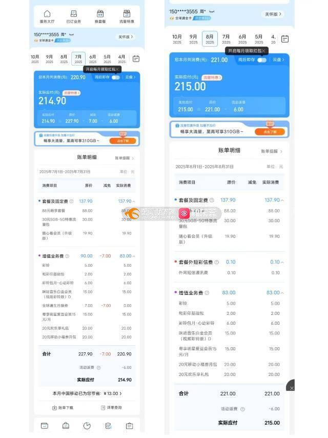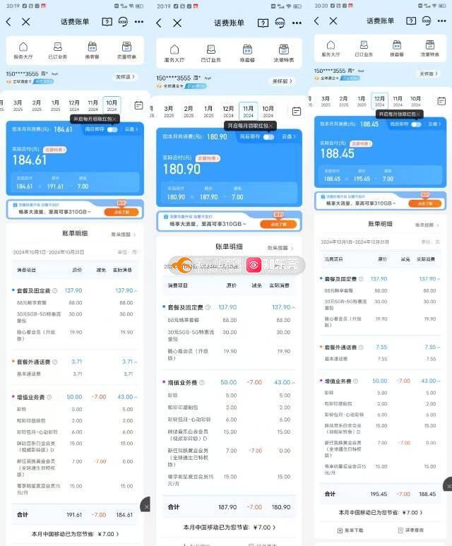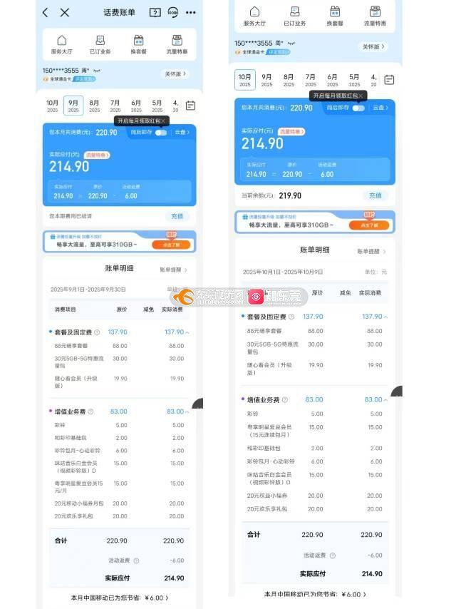 东莞移动偷扣偷开用户费用长达10来年,2025年1-10月份就偷了1200余元