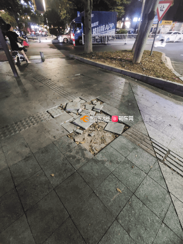 三江工业区区安全岛路面损坏。