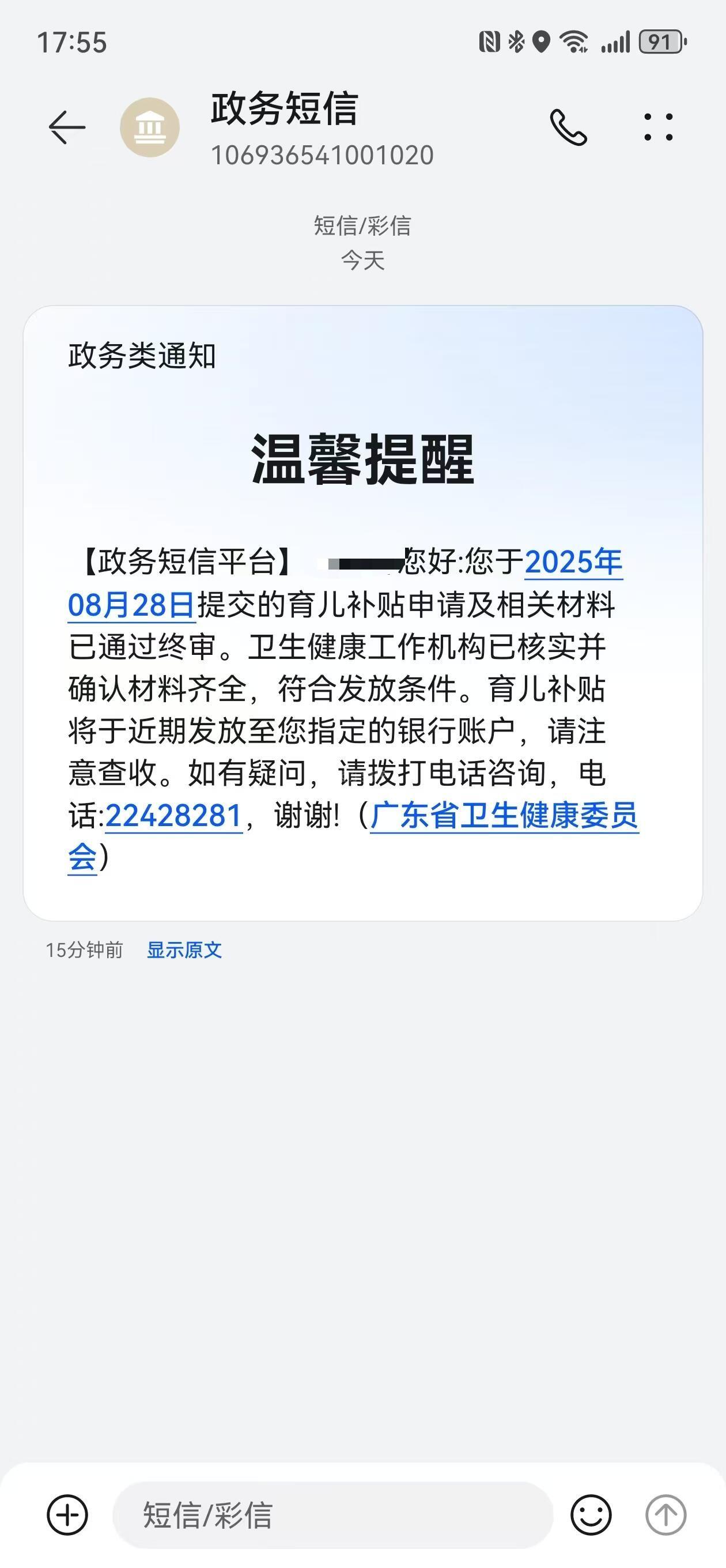 东莞市育儿补贴什么时候发放,8.28申请,9.22审核通过(当前属于待发放状态),当天收到政务短信说育儿补贴近期发放,现在都10.12了,还没有发放到位,所谓的近期到底是指什么时候?