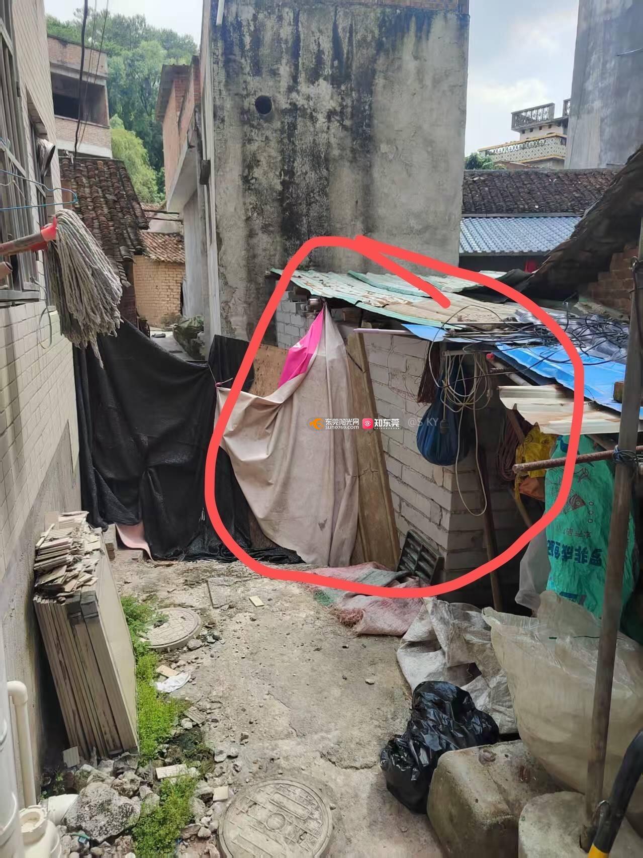 东坑镇角社上围158号后面, 这个位置违章搭建没有人处理。