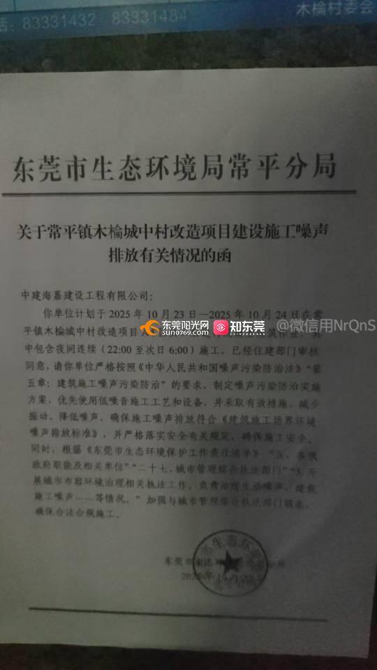 常平镇木伦村回迁房项目工地夜间施工噪音扰民!