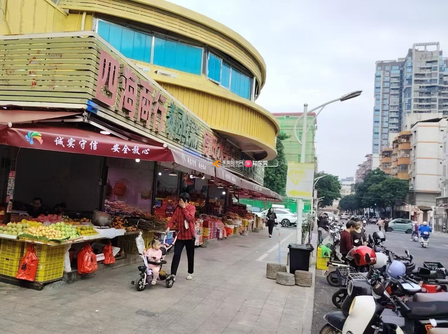泰园市场东门门口水果一排外摆,没有人车分流,容易撞碰