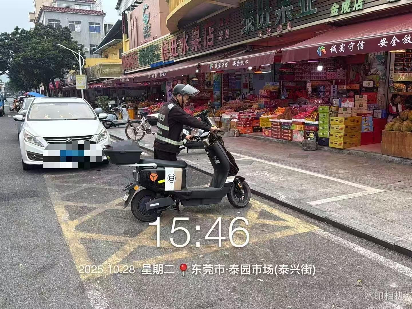 尊敬的市民,您好!您反映的问题已收悉,现回复如下: 收到反映的情况后,我们于2025-10-27对诉求进行办理。经查,暂未发现您所反映泰园市场东门门口水果店占道经营的情况,你所反映的泰园市场东门门口非机动车乱停放的情况属实。现场,我分局工作人员根据《东莞市电动自行车管理条例》对当事人进行口头教育,要求立即整改停放在非机动车停车位上。下来,我分局将继续加强该区域的巡查,落实该区域的长效管控机制。 如有疑问,请联系东莞市城市管理和综合执法局谢岗分局,联系电话:87762692。 感谢您对我们工作的理解和支持!