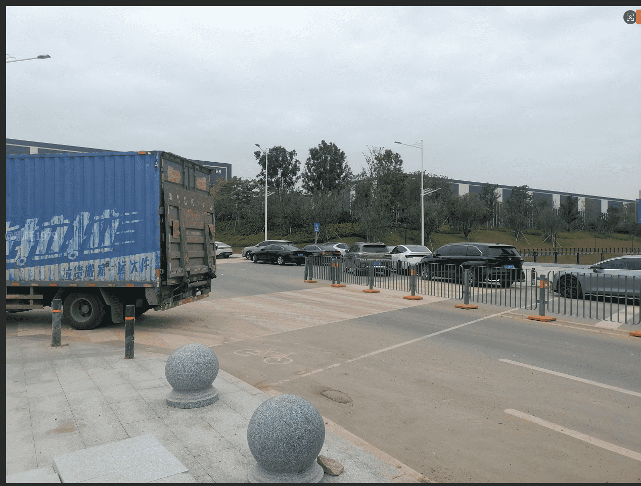 大坪水靠近万科四季花城的公路桥上,公路中间隔栏在行人道上,不便行人通行