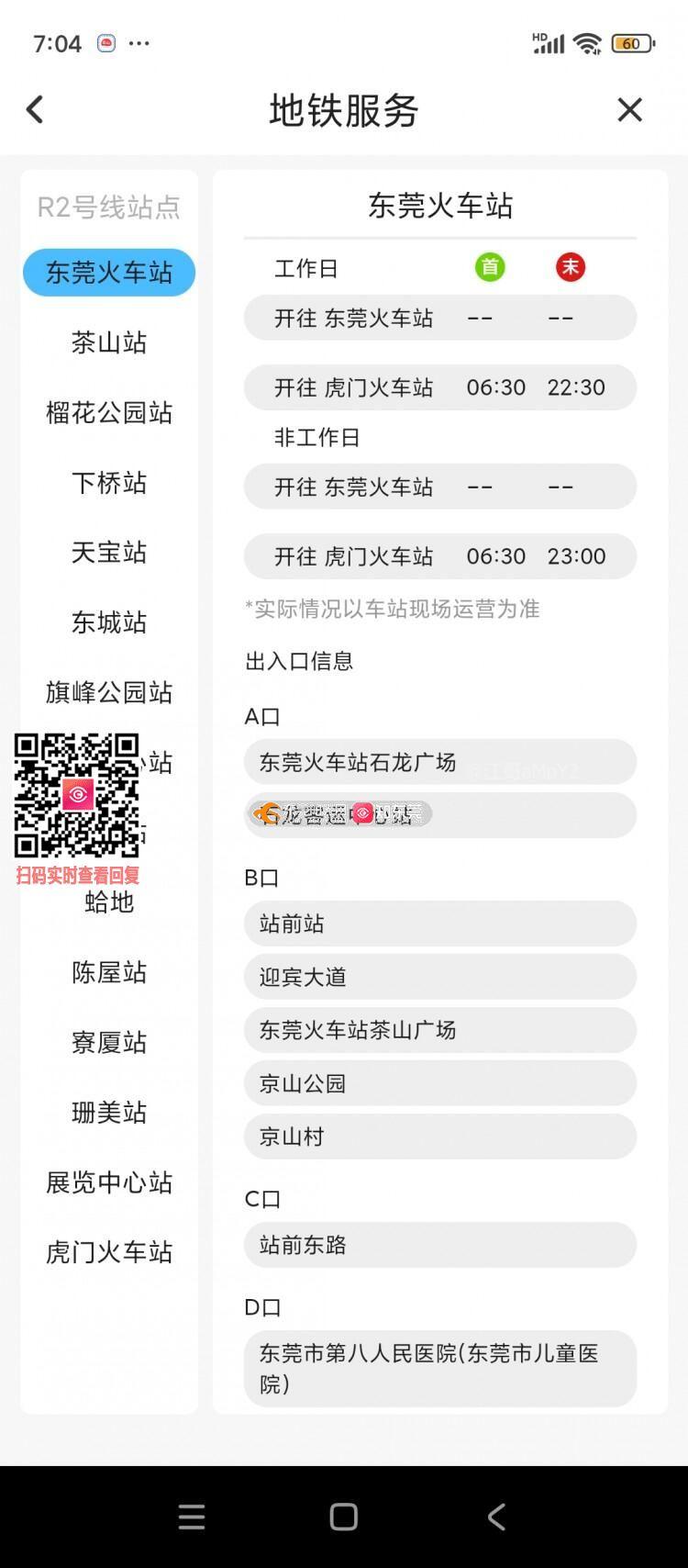 您好领导,咨询下关于东莞通手机app是否同步更新1号线的线路以及各站点出口信息,列车运行时间的信息,谢谢!还有届时东莞一号线支持地铁乘车码坐车吗