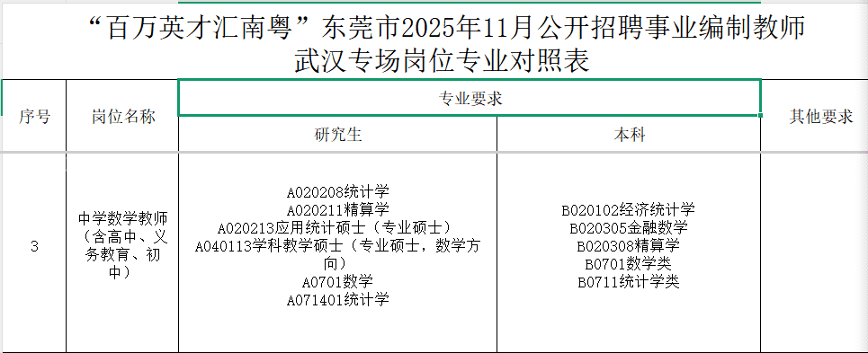 尊敬的市民: 您好!来件已收悉,感谢您对东莞教育的支持。根据您反映的问题,现回复如下: 我局本次设点武汉招聘中学数学岗位专业要求包含了“B0701数学类”,您提及的“信息与计算科学”专业代码为B070102,属于B0701数学类这个二级学科下面的具体专业。感谢您的理解与支持! 东莞市教育局 2025年11月17日