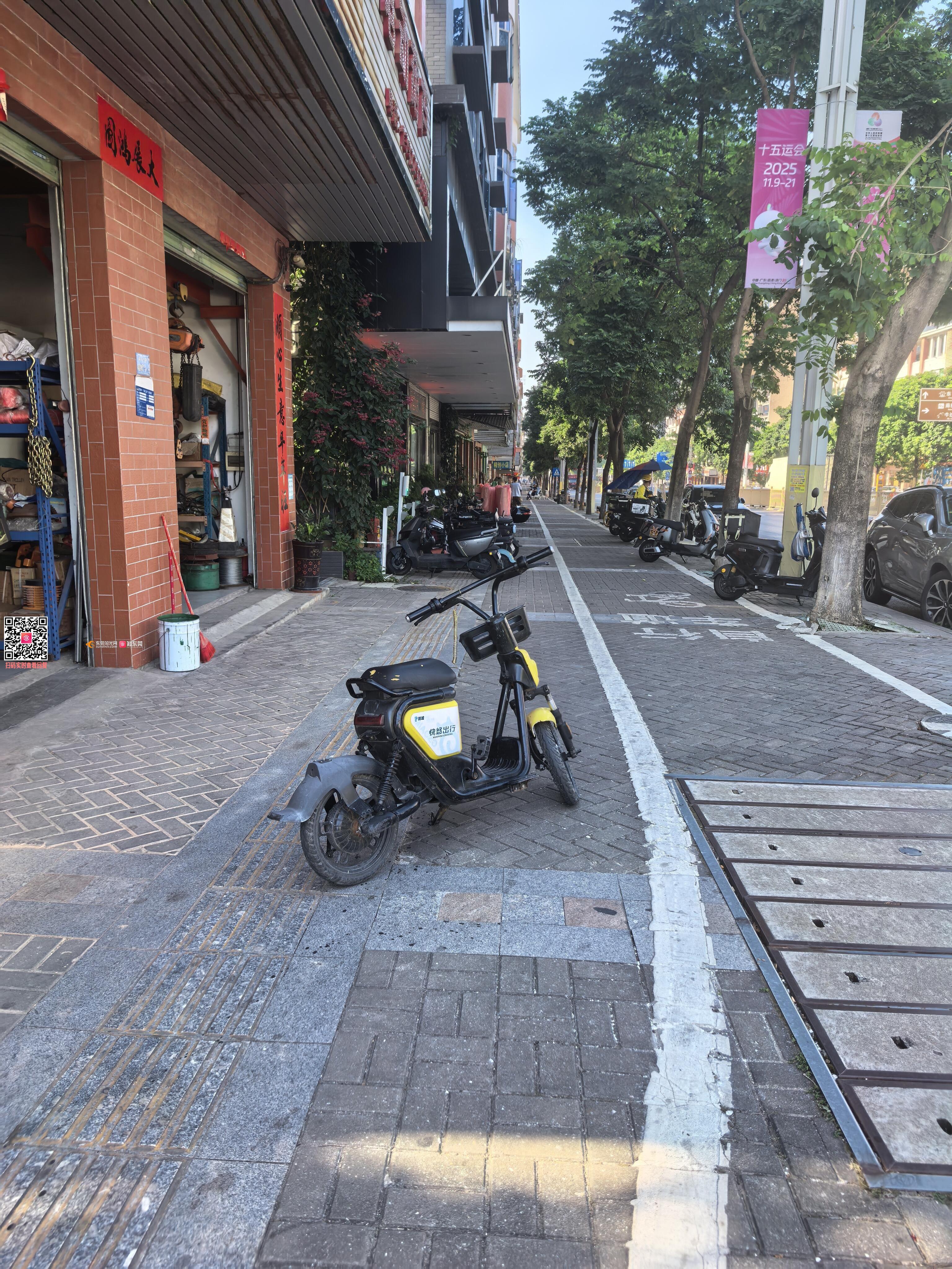 鹏城(快悠出行)电动车乱停乱放,已发现多次乱停到行人道跟自行车道上(而且转弯处)