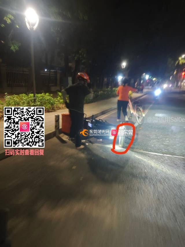 洪梅大道非机动车道 中间的柱子存在安全隐患