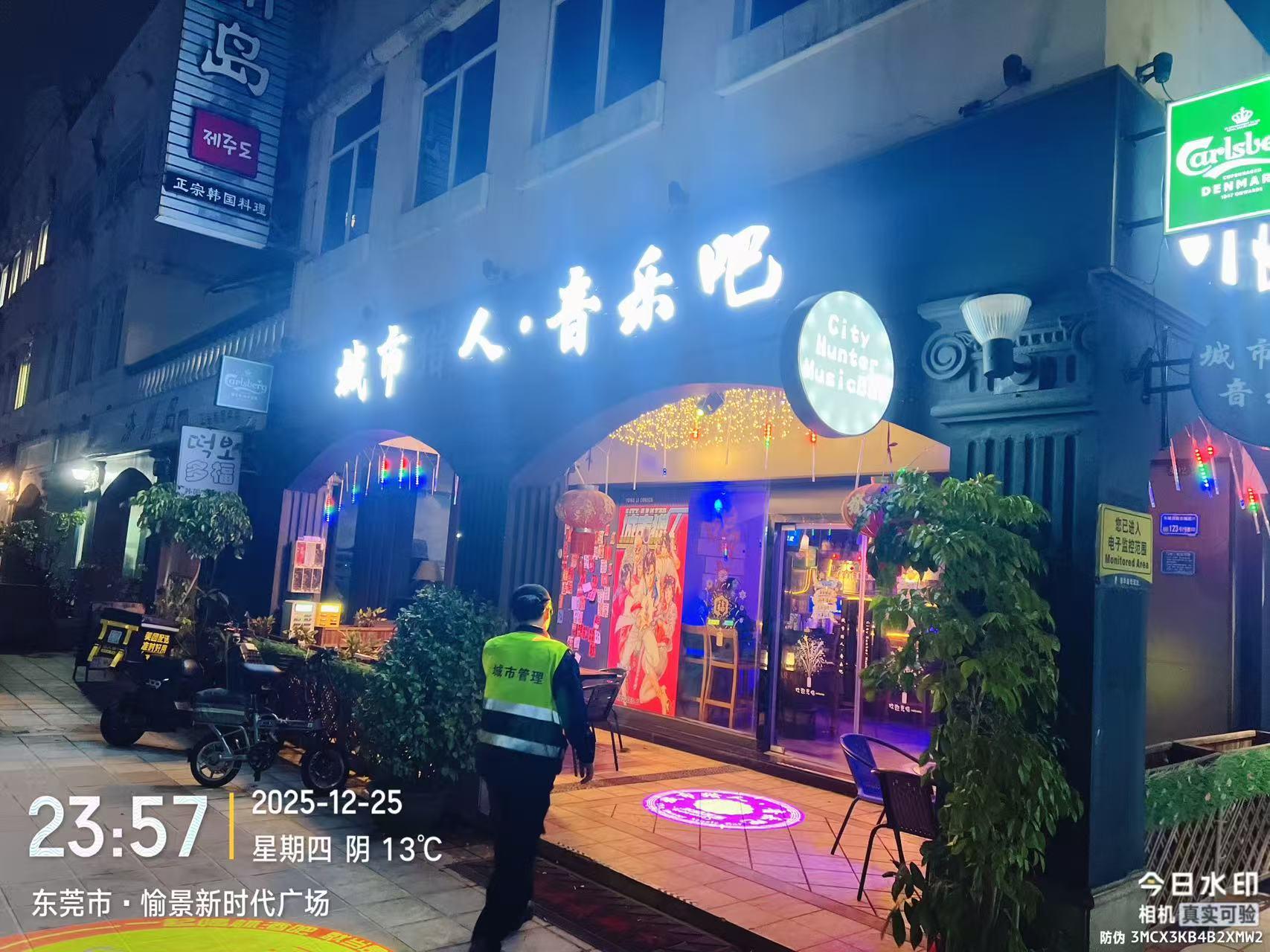 尊敬的市民,您好!您反映的问题已收悉,现回复如下:收到反映的情况后,我分局于2025年12月25日23时58分致电您未能接通,并于2025年12月25日23时58分对诉求进行办理。经查,您所反映的情况所提问题已经解决,经查,位于东城雍华庭步行街城市人音乐吧,现场确实发现播放高音音响情况,现场该店已将音响音量调低。根据《中华人民共和国噪声污染防治法》第六十三条第一款,综合上述调查情况,执法人员对该店负责人进行相关法规教育,责令其加强管理,注意控制噪音,避免噪音扰民。同时,责成属地社区加强属地巡查和管理,落实后续监管。如有疑问,请联系东莞市城市管理和综合执法局东城分局,联系电话:22001982。感谢您对我们工作的理解和支持!(东莞市城市管理和综合执法局东城分局)2025年12月29日