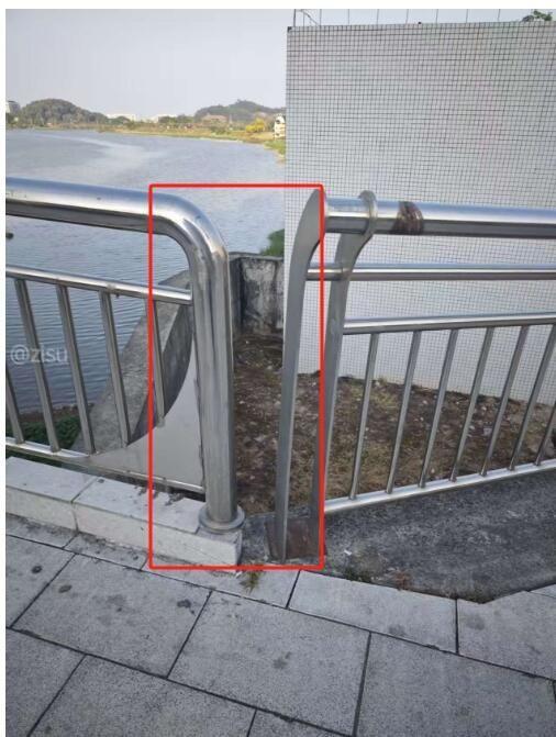 东坑镇的角社大桥,围栏存在安全隐患,特别是两个围栏之间的间隙太大了,小孩不小心的话可能会从间隙掉下去,建议消除这些安全隐患
