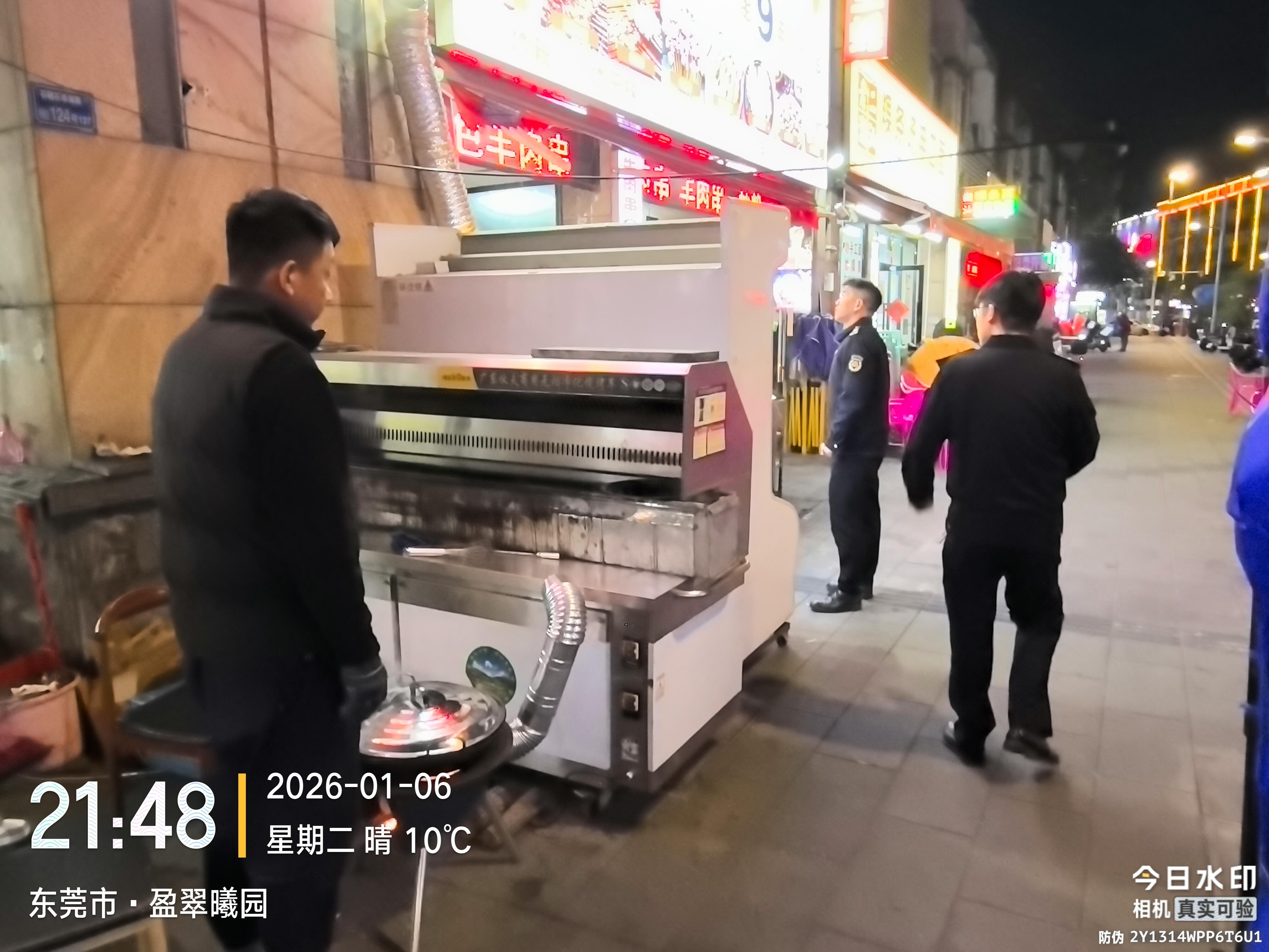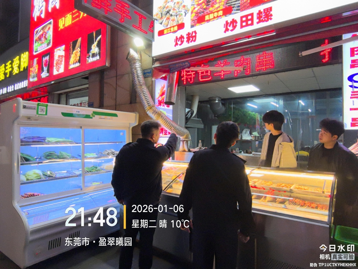 尊敬的市民,您好!您反映的问题已收悉,现将相关情况回复如下:2026年1月6日晚,石碣城管分局执法人员前往盈翠曦园同富中路段的商铺开展检查,现场核实新疆烧烤店已安装油烟净化设备;鹤岗小串存在外放排烟情况,执法人员已对店铺负责人进行提醒告诫,店家现场表示会尽快安装油烟净化装置,杜绝油烟扰民。下一步,我分局将加大该路段常态化巡查频次,重点核查新疆烧烤店净化设备开启、使用及定期清洗维护情况,同时跟踪督促鹤岗小串尽快落实净化装置安装工作。如您后续再次发现油烟扰民情况,可拨打我分局24小时值班电话(0769-86636306),以便工作人员第一时间到场核查处理。感谢您对城市管理工作的理解与支持。