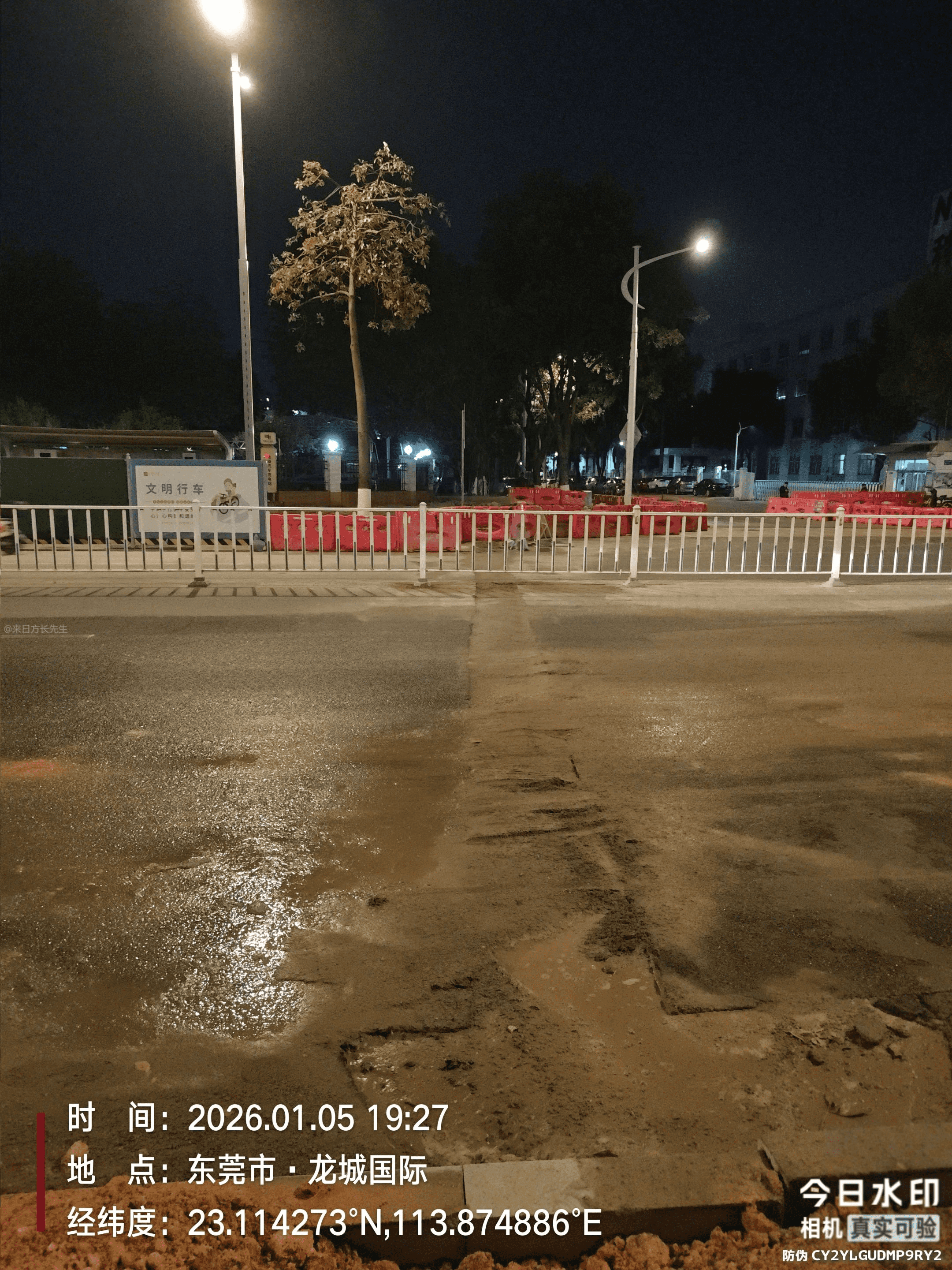 石龙镇方正路龙城国际路段施工,中间有一段路挖开了有凹陷,之前是有一块铁板盖住的,因附近居民投诉噪音,相关单位反映迅速已经把铁板撤掉。但道路中间的凹陷一直没有回填,且该凹陷有一定的深度,对来往的车辆造成极大的安全隐患(如爆胎)。望有关部门采取相关措施保障车辆出行安全,谢谢!
