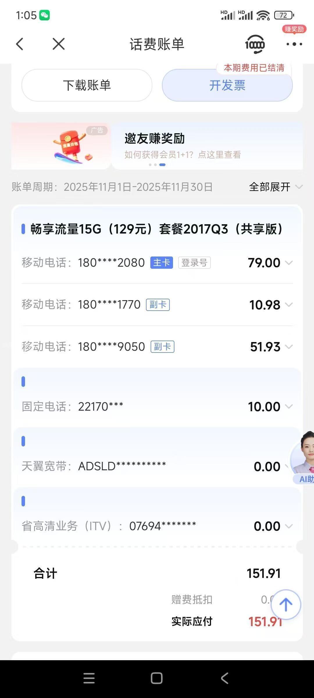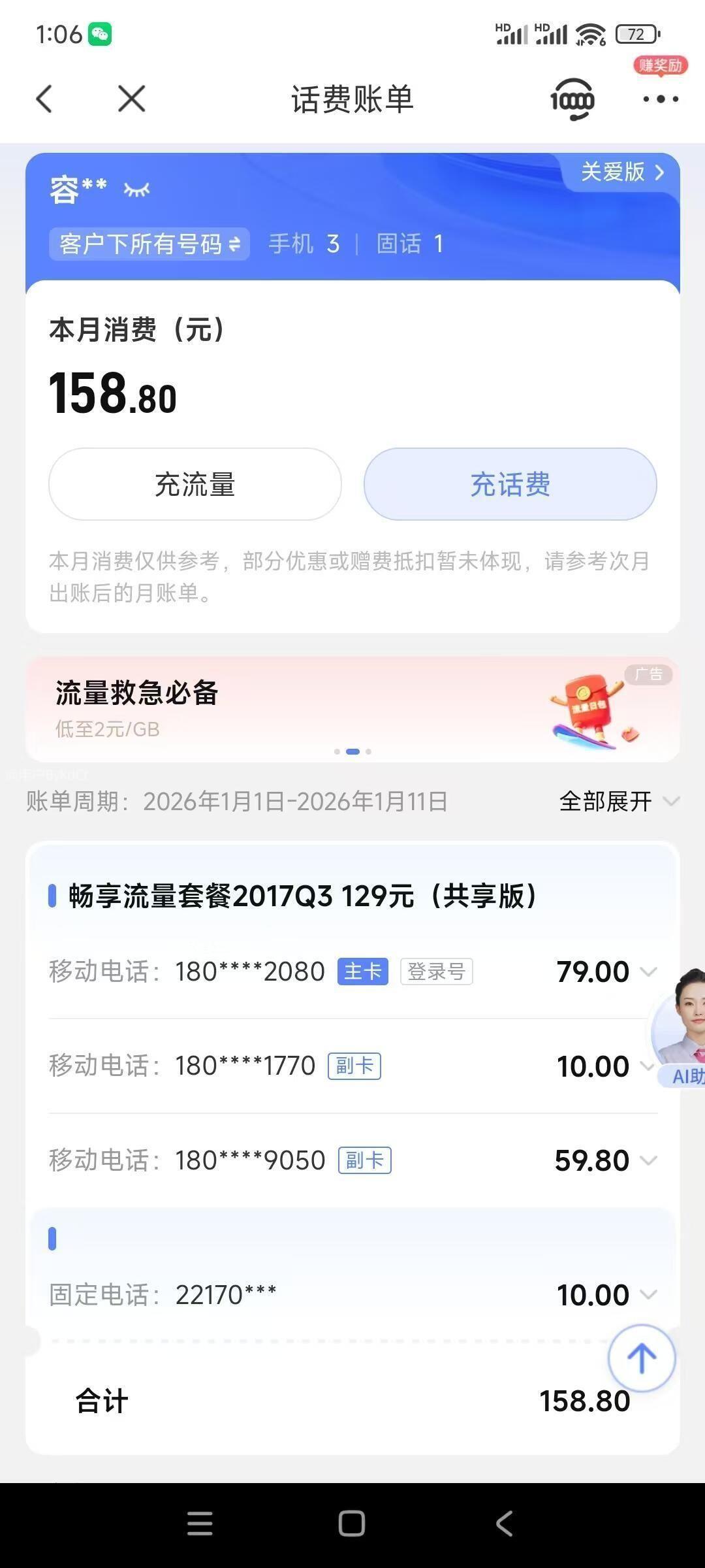 从11月开始,给副卡上面多了流量套餐和游戏套餐 一.本人套餐是无限流量的,为何会开通流量套餐? 二.老人家平时就接打电话,刷下抖音为何会有游戏套餐? 现要求把11月份到现在,共计三个月(共149.4元)的多收费用返还