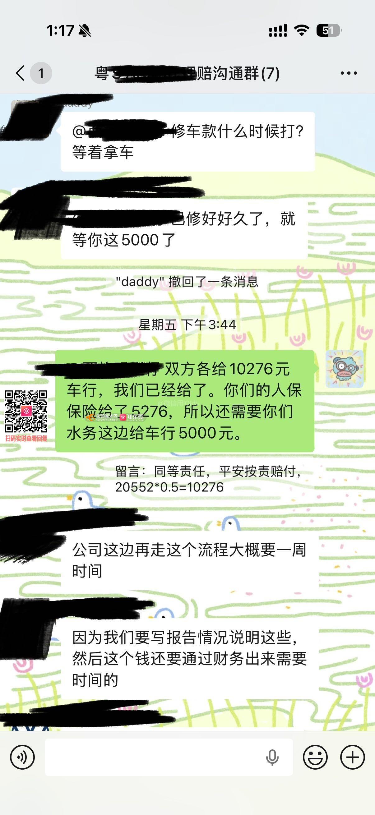 2025年12月21日,东莞市中堂镇潢涌村。东莞市水务集团供水有限公司施工范围未按照标准放置警示标识,未围挡导致车子掉入挖空的路中。事后交警判定同责,修车费用双方各承担一半,双方对此无异议。 2025年12月31日,车子修好,需付2万余元,我方已付一半费用至修车处。 事到如今,差不多一个月,对方(东莞市水务集团供水有限公司)仍未付清修车款,车在修车店不能开走。 一个月没车开,出行极其不便,受到极大影响,我甚至都没有要求对方补偿我出行不便的损失,只想让修好的车快点回家。 东莞市水务集团供水有限公司,快点赔付修车款!!!!