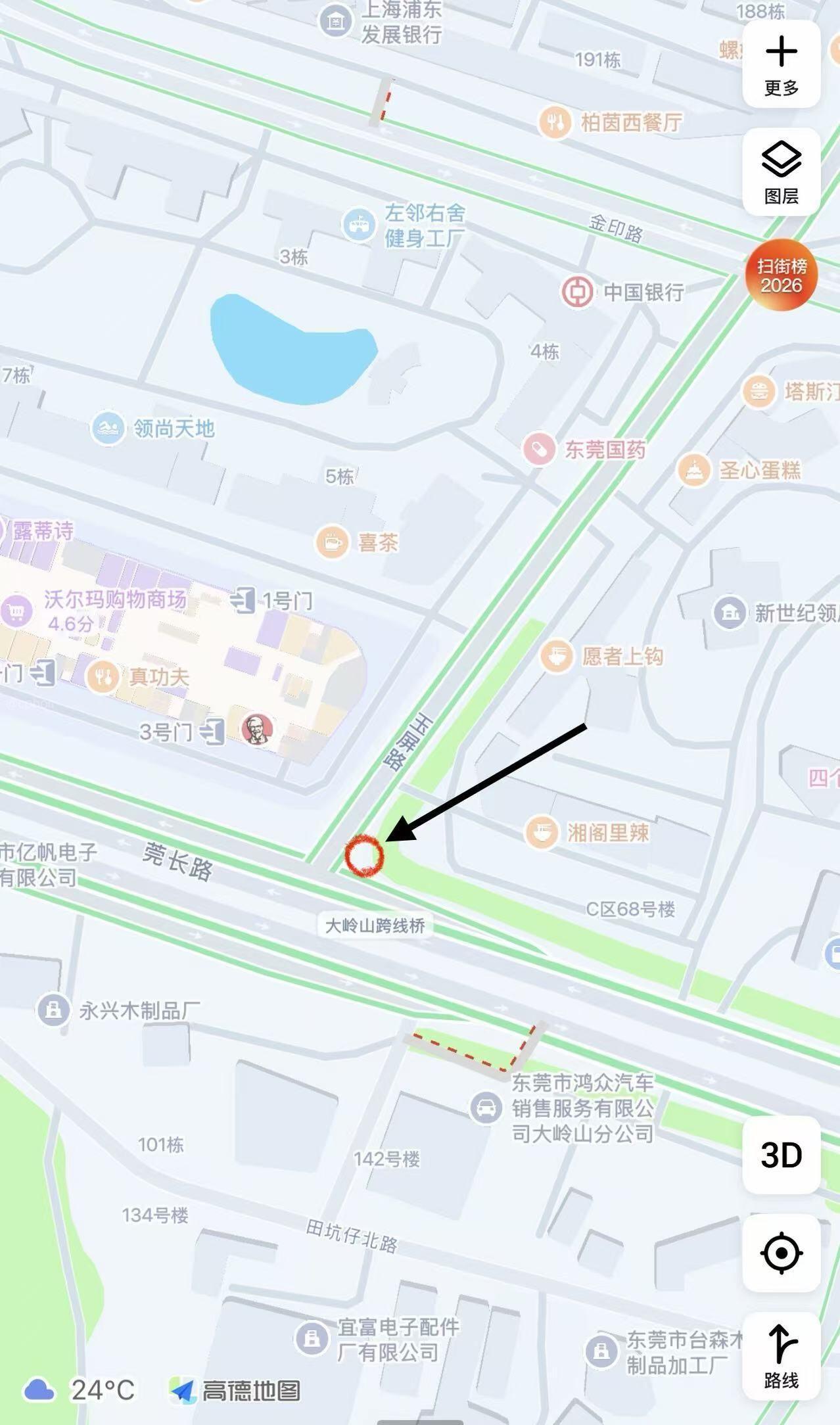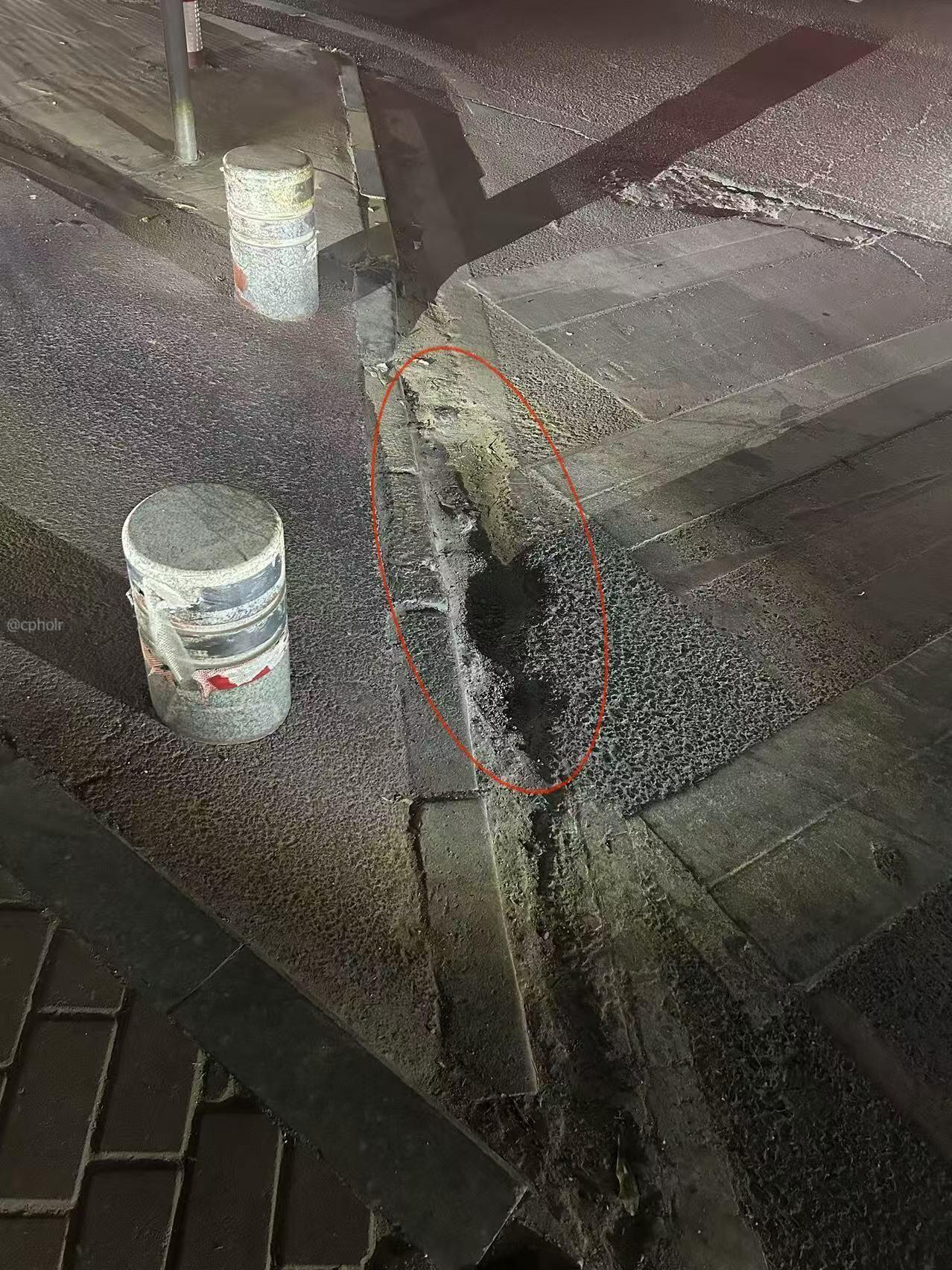 莞长路和玉屏路交汇的自行车道下来地面有个大坑
