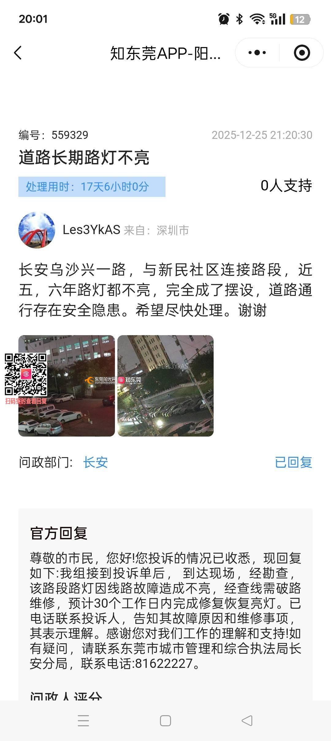 长安乌沙兴一路,与新民社区连接路段,近五,六年路灯都不亮,完全成了摆设,道路通行存在安全隐患。希望尽快处理。谢谢。再次投诉,一年推一年,真要出事故才能处理吗?