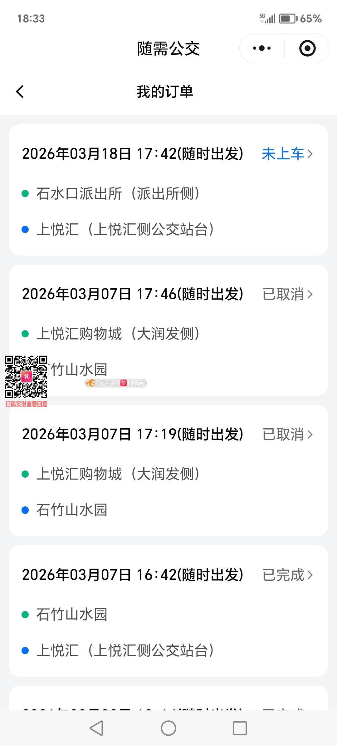 1、公交车次数少,正常情况下五十多分钟才有一趟 2、随需公交不随需,常常从下单到上车,要等五十多分钟
