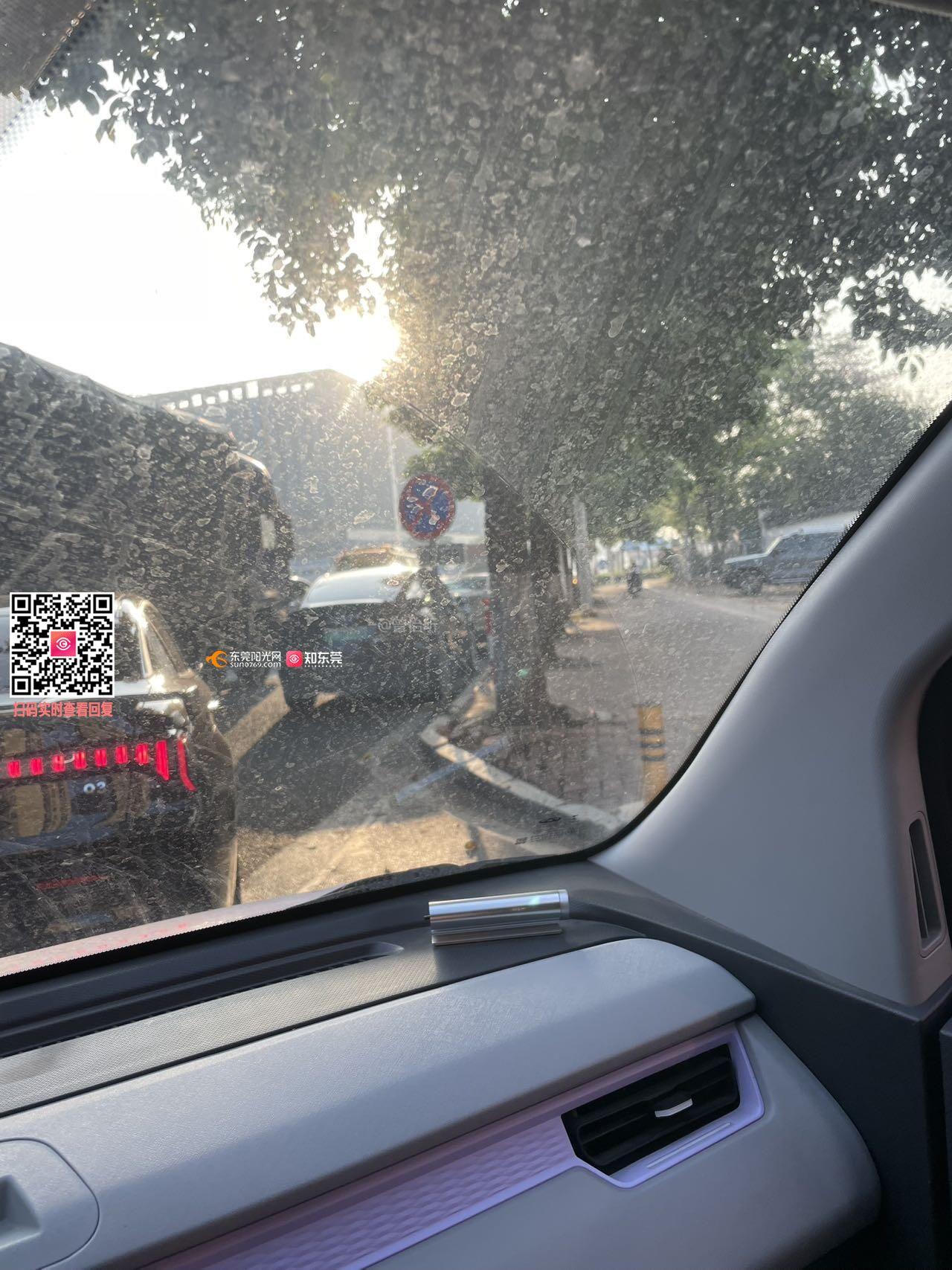 山水江南车库出口路段车辆占道违停情况