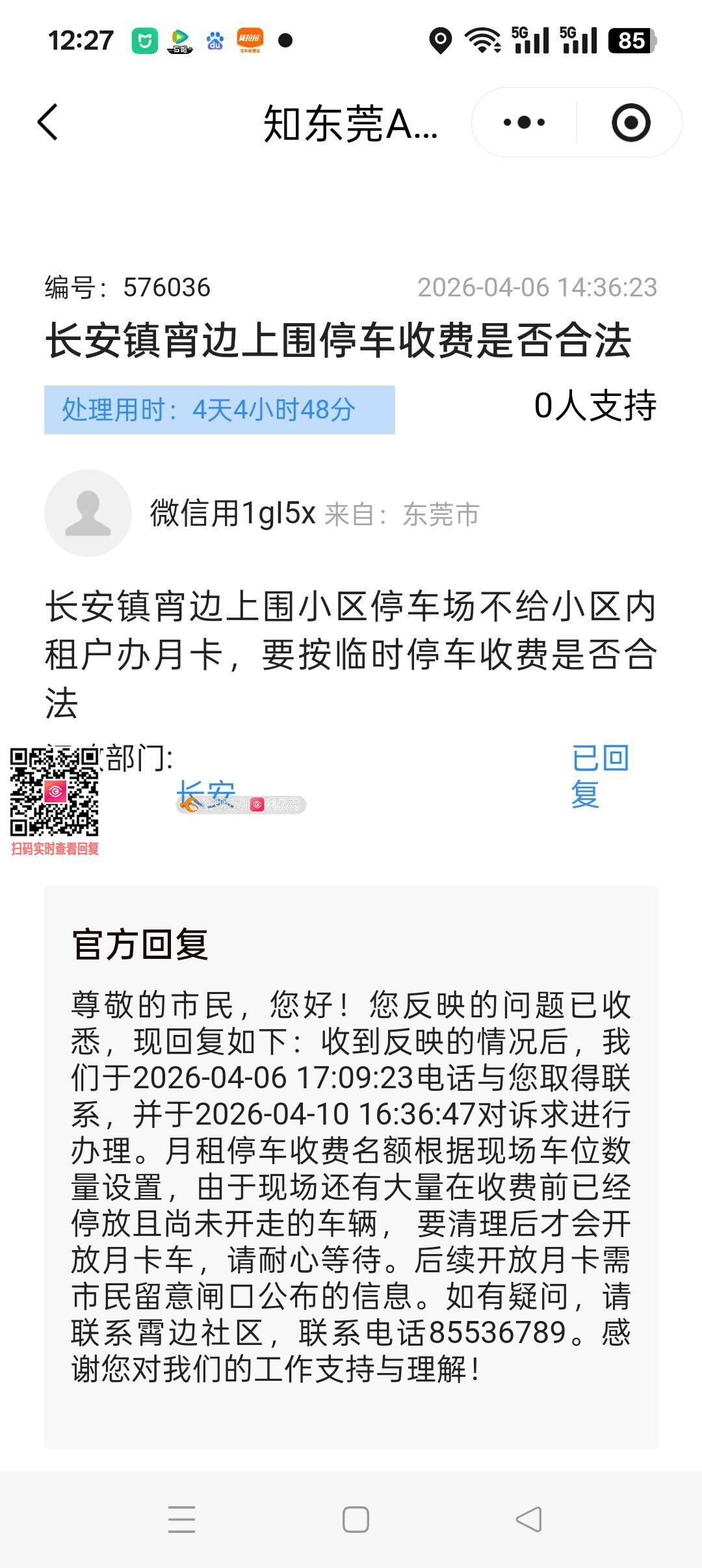 对4月6日投诉的回复是很不满意的,难道停在里面的车不开出去就要我们正常停车者交高额停车费吗?