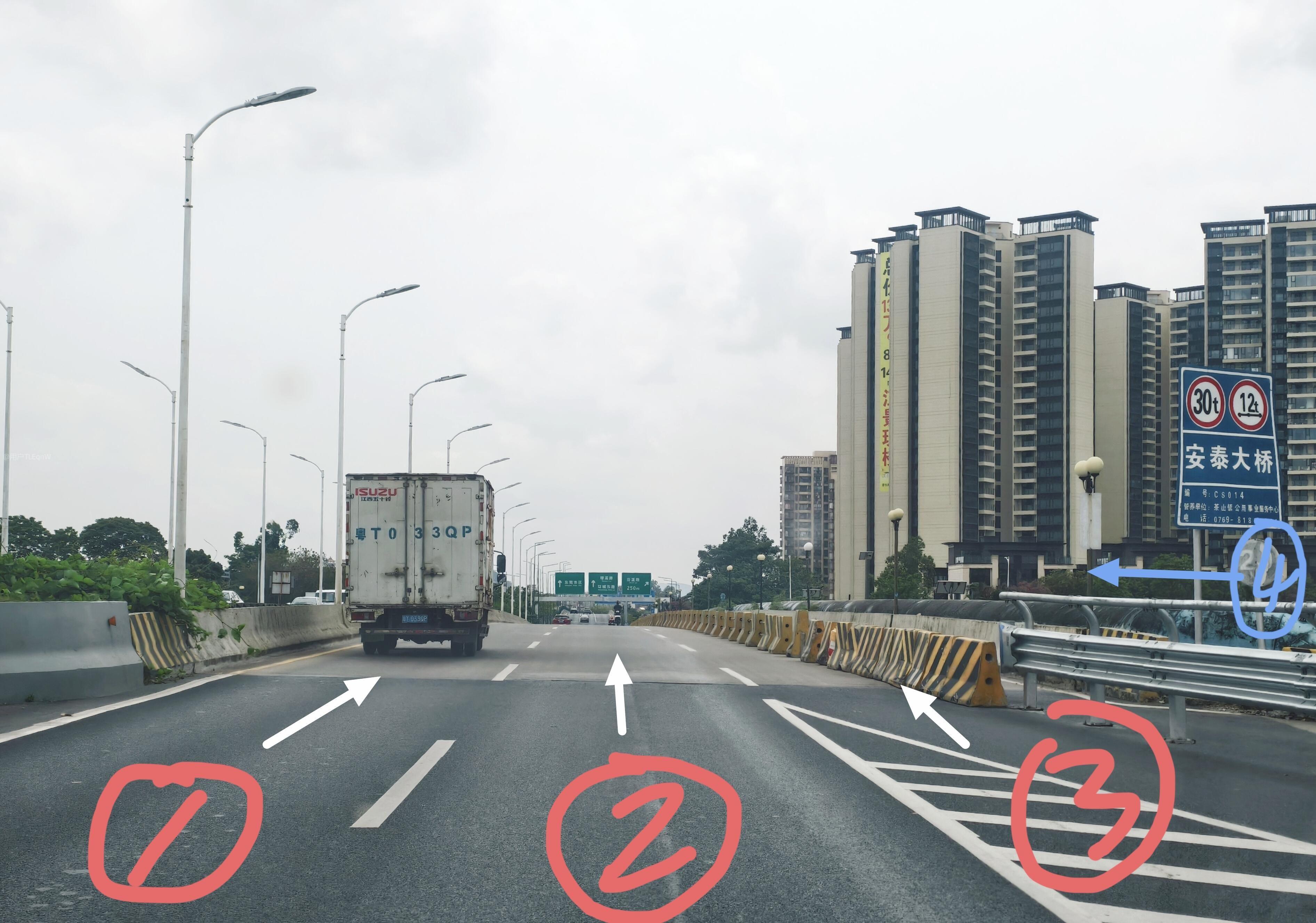 同时,在大桥两侧各增设1条非机动车道,实现机动车和非机动车行人分流,保证快速路封闭性,从而保证速度,避免拥堵,降低车祸率。至于增设的非机动车道,拓宽成本略高但工期长,单独施工成本虽高但不影响通行,也可才用钢板造铁架桥。