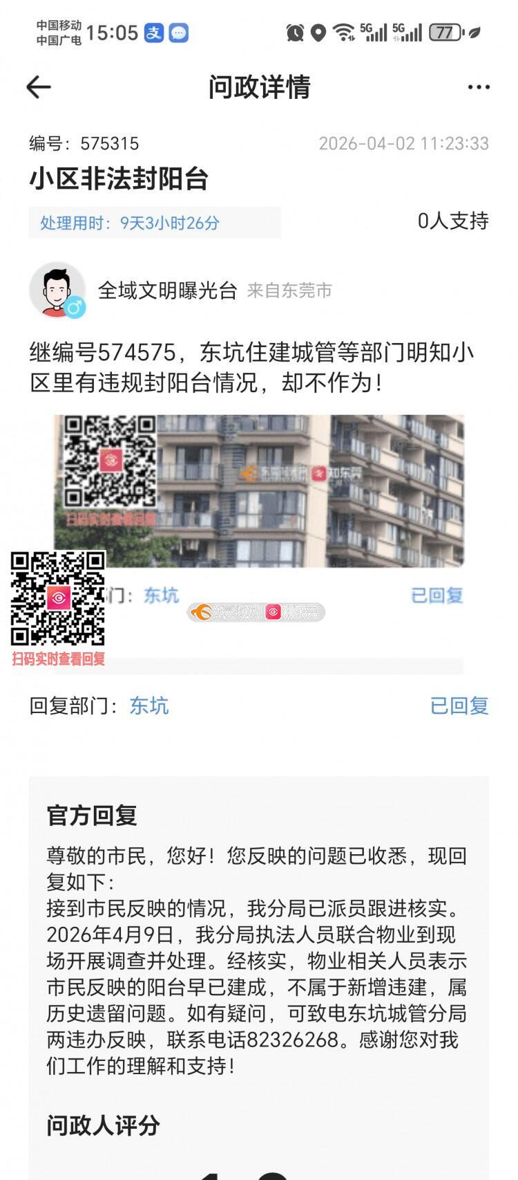 继编号:575315,想请教一下东坑城管部门,假设违建完成之后第二天被发现了,是不是也是属于历史遗留问题,毕竟没有被当场发现,这样就可以不用处理了?