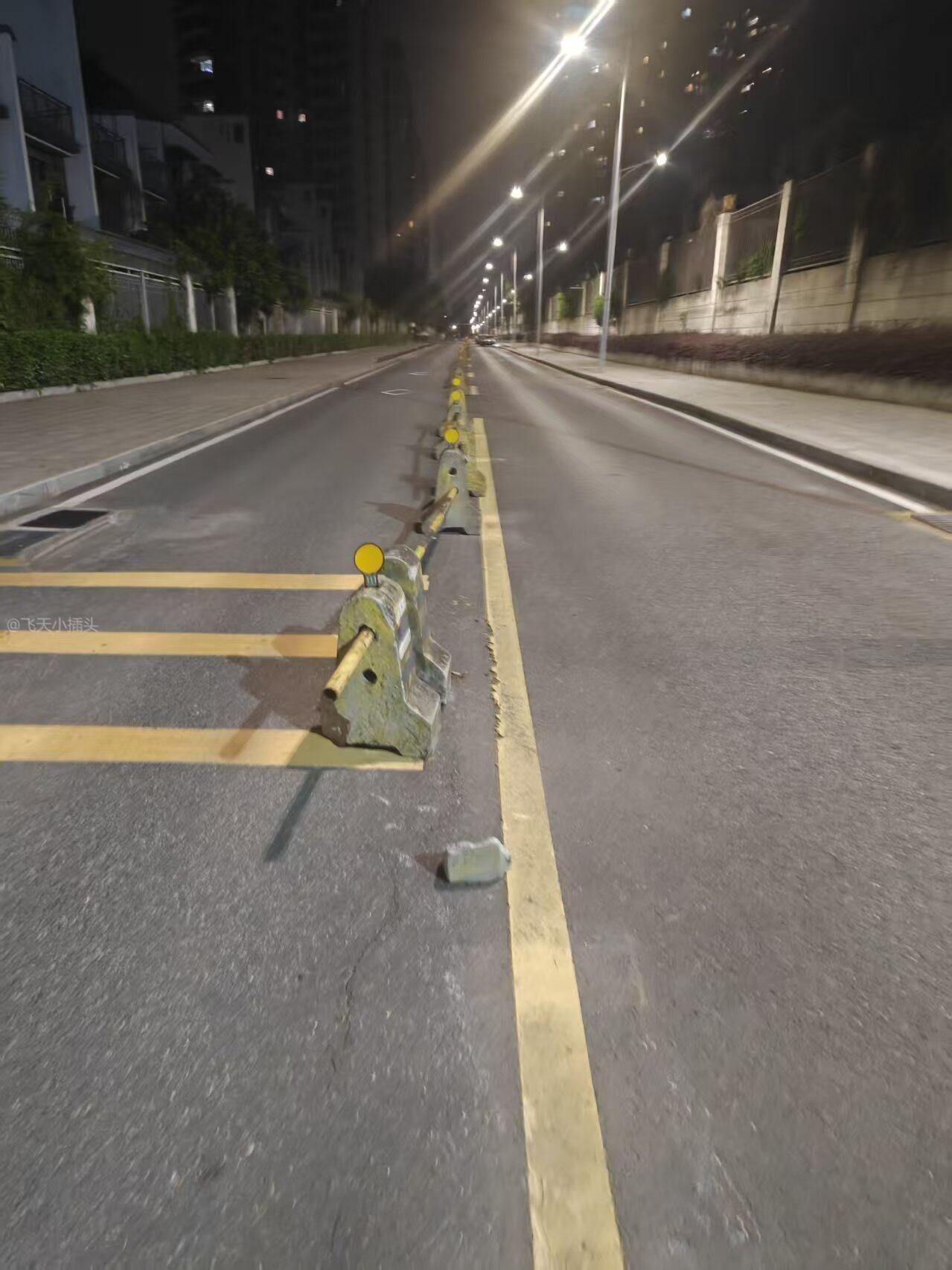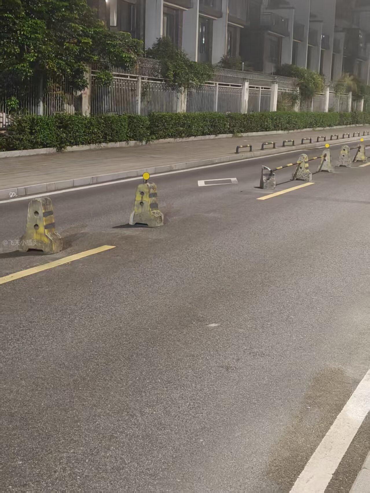 576145编号已经投诉了一次,根本没有处理。麻烦相关人员仔细检查一下整条规划九路,靠近望海路那边的半截。不要总是拍好的那半截,谢谢。请政府相关人员也安排人员到现场检查下。 麻涌镇规划九路此前污水管施工,施工完成后路面隔断水泥墩摆放不规范,导致双向两车道宽度不对称,加上部分水泥墩已经损坏,容易引发事故。