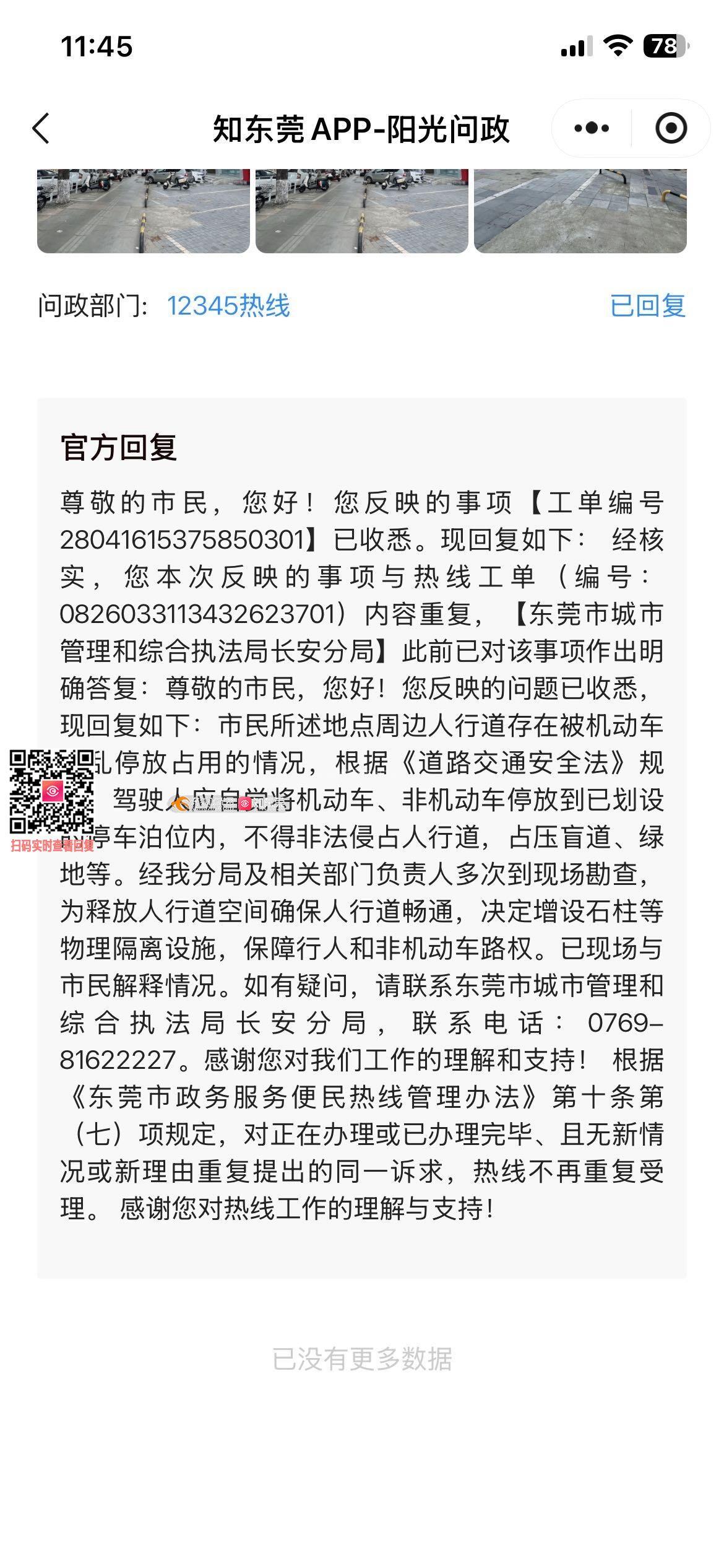 尊敬的东莞市城市管理和综合执法局长安分局: 您好!针对此前我反映的交通石墩设置问题,现补充反馈如下: 一、关于石墩设置的合理性问题 我所反映的点位,石墩设置区域完全不影响人行道通行与机动车辆正常行驶,该区域旁已有独立铁栏杆对人行道进行物理隔离,原本的通行空间充足,增设石墩属于不必要的管控措施。 二、关于停车管理的公平性与措施疑问 该点位旁的银行区域可正常停车,而我经营的店铺门前却被完全封停,停车管理标准不统一,不符合公平原则。同时,针对周边人行道乱停车问题,我未看到相关部门采取常态化、精细化的管理措施(如违停巡查、贴单处罚、增设临时泊位等),仅以“一刀切”封路的方式处理,未能从根源解决违停问题。 三、关于优化调整的诉求 石墩的设置已严重影响我店铺的正常经营,给顾客通行、停车带来极大不便,直接造成经营损失。恳请相关部门: 1. 撤销该点位的石墩隔离设施,恢复原有通行与临时停车空间; 2. 针对周边违停问题,采取常态化巡查、违停处罚等精细化管理措施,而非简单封路; 3. 结合周边商户经营需求,合理规划停车区域,平衡行人通行与商户经营的需求,切实解决实际问题。