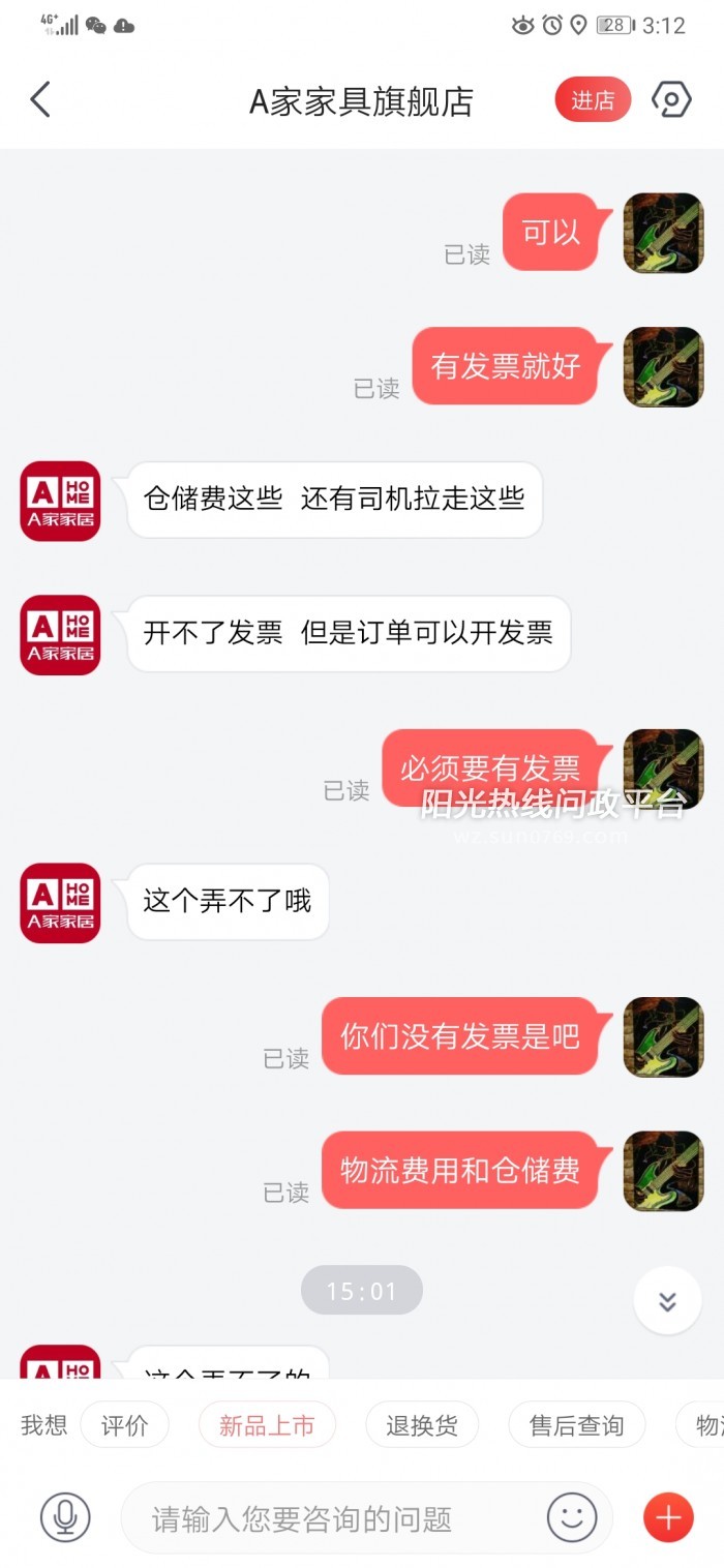 A家家具客服说没有物流发票,我建议国家部门核查一下,这么大的销售,没有物流仓储发票,不是偷税漏税是什么。