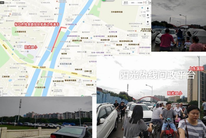 关于银丰路到阳光二小靠河边路段交通问题,小学生上学放学道路拥堵!