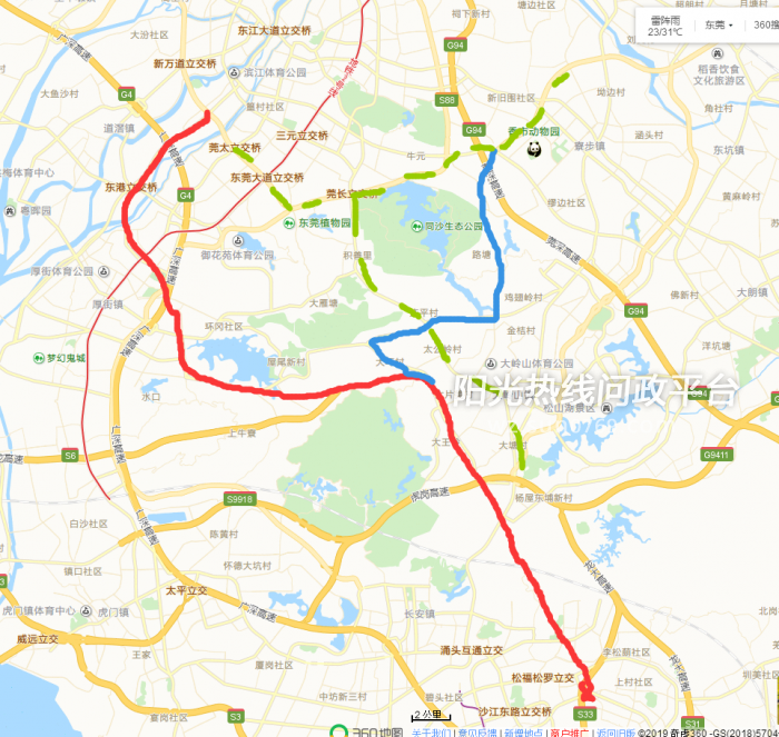 东莞的环城路在市区中心而且在市区和107国道并线,如图绿线,一看图就清楚,环城路割裂总部基地和国际商务区,大货柜车导致环城路常常拥堵,非常吵!国道经过市区核心肯定不合理!大量车辆从万江经环城南路到莞长路(107国道),拥堵基本无解!东部快速路的车辆经松山湖大道转环城路往莞长路(107国道)导致在松山湖大道和环城路交汇处常拥堵,基本无解!一看图就明白主要是水濂山公园和同沙公园严重制约东莞市区和南部的联系。破局建议: 1.107国道改到从港口大道-厚街-高架环莞快速-经厚街车站旁-环湖路-靠近莞番高速线位到厚大路-在杨屋跨越莞长路-地下穿越杨屋马鞍山-深圳南光快速。此举不但107国道不经过南城市区,大大缓解环城路压力,助力国际商务区,莞长路(107国道)可以市政化(深圳107国道也在市政化),加强市区对接松山湖,缓解莞长路长安车站段交通压力,从全局来看是一条从广州到深圳的大动脉。 2.东部快速在莞深高速处延长下穿佛灵湖郊野公园通过连马路对接新107国道,这样东莞快速路不用通过环城南路到莞长路。 另深圳很多主干道在关键区域改走地下,建议东莞学习,虽然成本贵些,但是在建设之初就这样建比后期挖隧道还是便宜不少,所以建议环城路莞长路到东莞大道段改走地下,莞番高速在连马路段改走地下。 以前建议过松山湖第二大道下穿佛灵湖郊野公园,得到回复说公园禁建,但是我觉得有待商榷,比如深圳的森林公园不知建了多少隧道,不然福田和南山的人民都不知道怎么北上,从莞高速也是穿越观音山森林公园等等,南京的玄武湖底都建有隧道,个人认为同沙森林公园从位置上来说割裂市区和松山湖,在佛灵湖郊野公园下建隧道(隧道下沉路面之下),让东部快速和松山湖第二大道共用,破解交通困局也不失良策,而且隧道不经过同沙公园核心区。