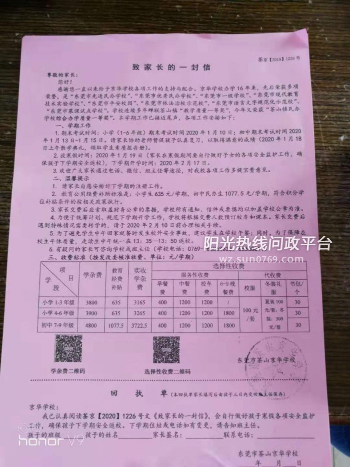 东莞茶山京华学校为什么每个学期都在涨校车费,早餐费,中餐费