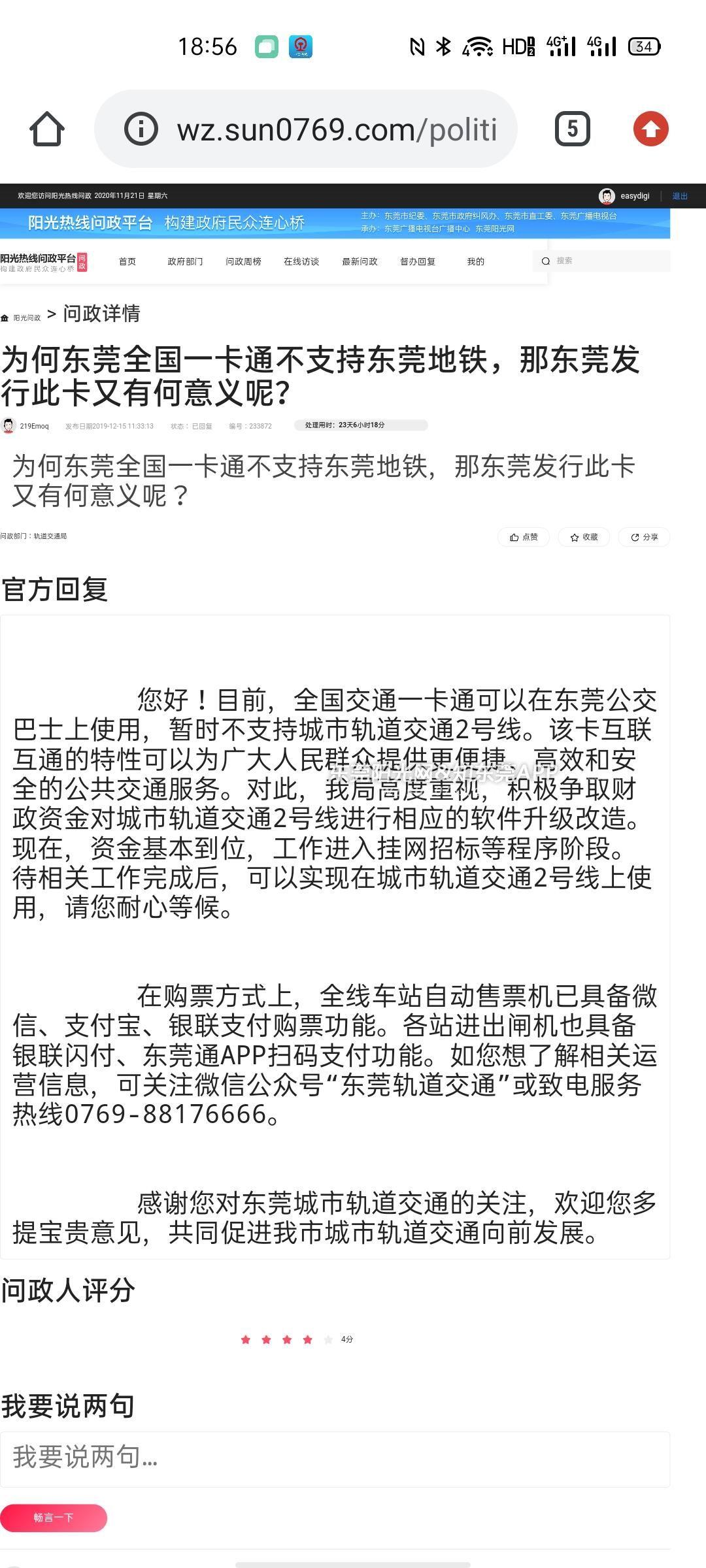 去年就有网友提问,轨道交通局回复资金已经到位,但刚才我致电0769 8817 6666,客服回复东莞地铁依然不支持全国一卡通,是什么原因?