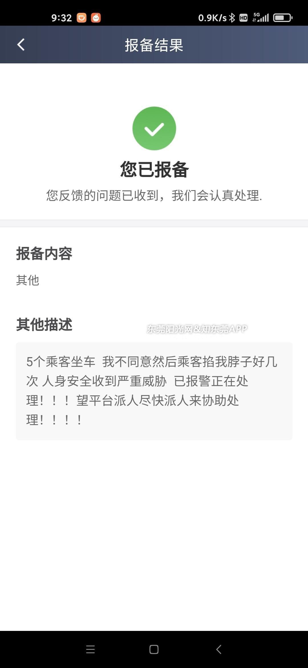 今年由于疫情原因 不得已加入了滴滴网约车这个行业 从一开始虽然有点累但是也能够有些收入 也颇感欣慰 不过前几天不久发生了一起恶性事件 让我对滴滴的看法大打折扣 滴滴扣扣声声说非常重视司乘安全 难道这只是说着玩而已吗 乘客的安全固然重要 司机的生命安全难道就这样命如草芥??? 事件详细经过:11月28日凌晨4点30分左右 我在虎门接到一个订单 起点是卢屋永勤工业园对面 终点是大绅娱乐会所 当我驾车到达起点 当时一共5名男乘客 看样子都是30岁左右吧 想要超载坐我的车载他们去目的地 我当时就跟他们解释5个人不能载 属超载行为 他们立马就不高兴了 其中一个乘客坐在我后面立马掐住我的脖子 当时可能力度有点大 我都有点说不出话来了 然后我还是忍着 也没怎么反抗 想想他们出了气就会走的 他们是下车了 我当时也被他们吓懵了 没那么快离开 心里面想着到底要不要报警 没想到他们看我没走立马又折回来用力掐我脖子 还有另外一名乘客打开我主驾驶们要拉我下车揍我 还好系了安全带 没被他们拉下去 见我没反抗然后就扬长而去 走的时候还用力踢了一下我车屁股 我当时真的被他们吓疯了头 跑滴滴从来没碰到过这样的事 感觉自己遇上黑社会了 要是我解开了安全带被他们拖下车我的生命真的会受到威胁!我把车子往前面开了50米才报警 真实不敢相信法制社会还有这么嚣张的人 这么无视法纪!我现在想想都有些后怕! 当时报了警直到12月2号下午我才做了伤情鉴定 虽然只是鉴定轻微伤 但当时伤情也比较严重的 12月5号 我来到虎门博涌派出所找到受理我案件的民警 希望民警可以尽快帮我处理 早日抓到那几个人 一开始警官都比较认真配合 滴滴方面也承诺随时配合警方调取证据 可是当警官问道要调取关键车内桔视视频的时候 滴滴确给警官下了一道难题 说要警方提供证据调取通知书 才能把桔视视频证据做成光盘的形式寄给警方 可警方又说只有刑事案件才能开具证据调取通知书 因为我这构不成刑事案件 这到底是警方不提供相关资料文书 还是滴滴百般刁难 偏袒乘客 故意找借口不提供车内桔视视频证据? 难道司机就这样被乘客打了 没人能管得了吗 难道乘客犯罪了 滴滴也要偏袒到底吗?我们司机挣这点血汗钱容易吗 还要受着这等屈辱 真是要危及到了生命 你们才肯帮滴滴司机说句话吗 至今殴打我的乘客任然逍遥法外 东莞现在是文明城市 难道就是这样的吗 希望通过此平台 东莞政府相关部门能够多点关心我们生活在社会最底层的这些打工人 我们就想在这个城市讨口饭吃 难道就这么难吗??? 以上所说都是事实 没有半点虚假 本人敢拿人格担保!