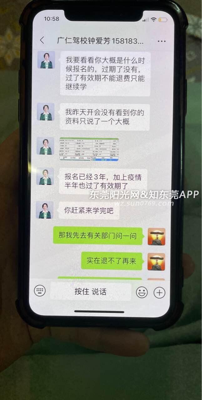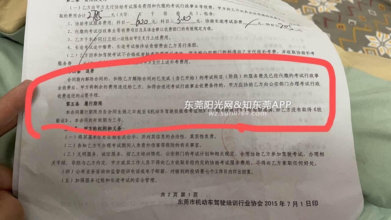 我17年4月7日在东莞广仁驾校报名学车,交了5780左右学费学习C2。2018年3月通过了科目一考试,之后因为在深圳,也没学习科目二,也没有进行科目二三四的考试。现因为驾考有效期不足以学习并考过科目二三四了向他们申请退费,2020年8月5日致电他们说需要扣费2800,今天向他们总部咨询说给他们交费时间超过3年了,超过合同有效期了,所以一毛不退。首先一毛钱都不退我认为不合理,其次,合同上写的合同有效期限是到取得《机动车驾驶技能准考证明》有效期届满,也就是说我现在也还在合同有效期内。
