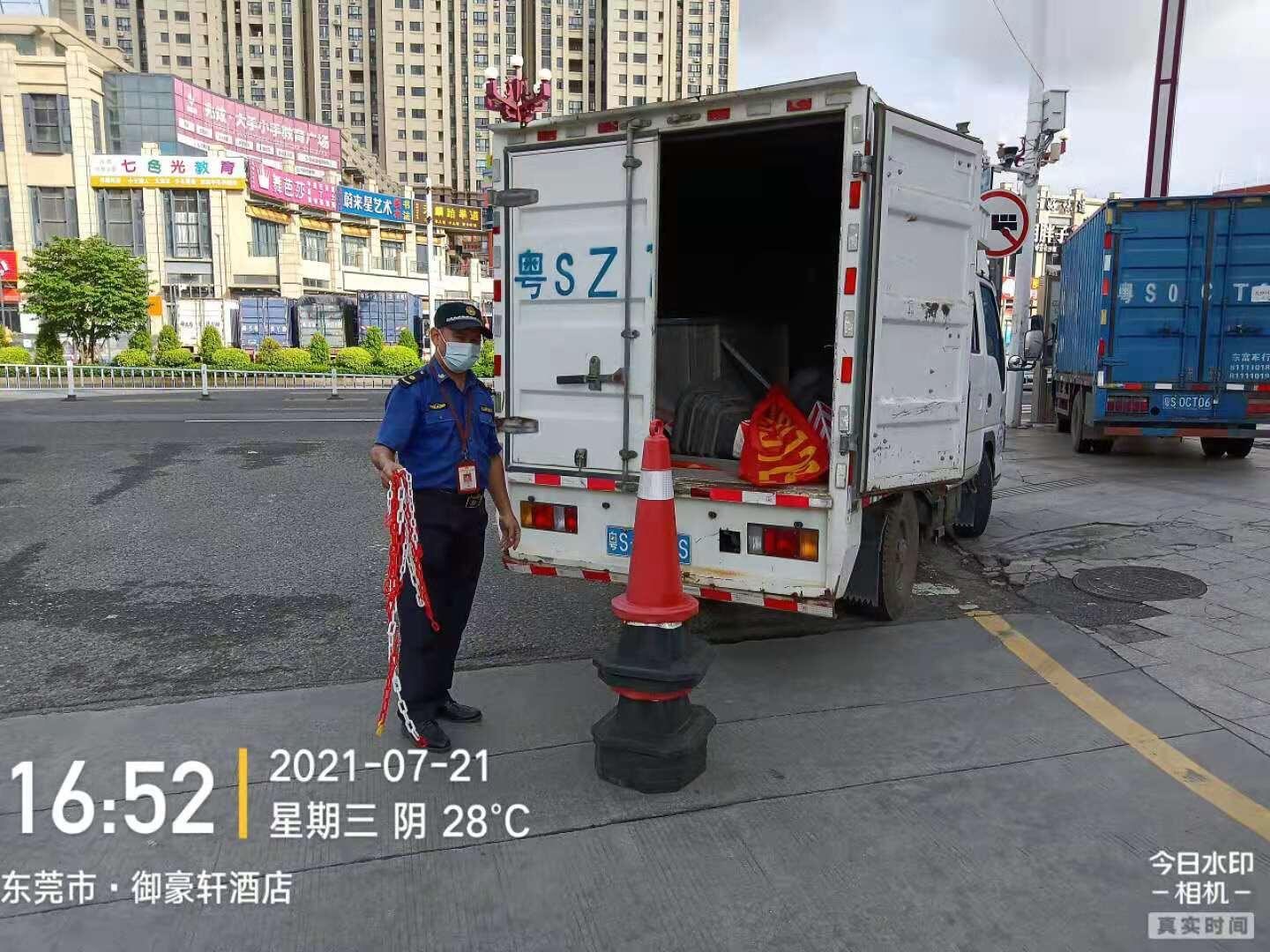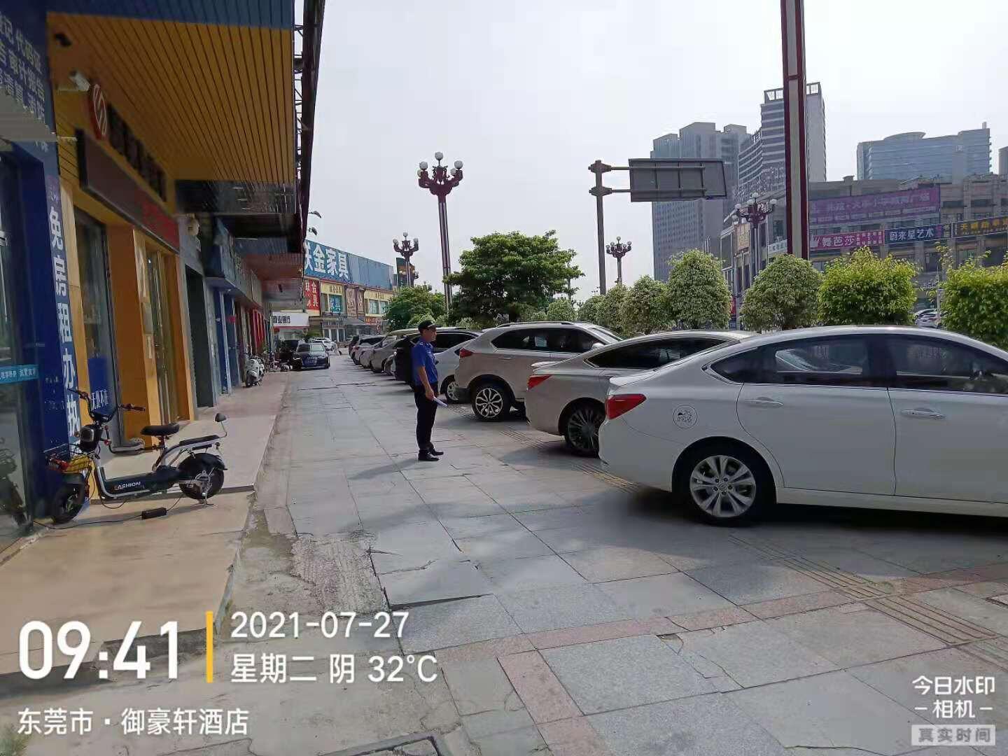 投诉已收悉。就您反映的问题,现将有关情况回复如下: 我局大朗分局执法人员于2021年7月21日到现场调查处理。经查情况属实,对相关店铺负责人进行批评教育,向其解释占道的危害性及有关法律法规,责令立即搬离占道物品,停止占道经营行为。7月27日,大朗城管分局执法人员再次到现场进行复查,已无占用公共车位现象。下来,大朗城管分局将派员加强对该区域的巡查监管。如市民发现有城市管理的相关问题,可保留证据并致电东莞市政府服务热线:12345进行反映。感谢您对城市管理工作的监督与支持。