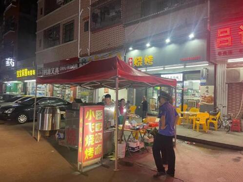 温竹路小飞烧烤店占道经营,油烟直排,深夜噪音扰民