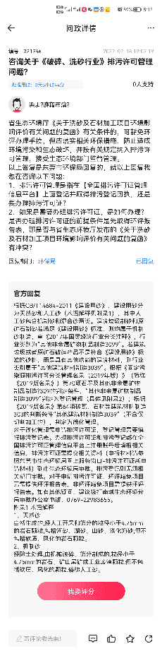 根据GBT14684-2011《建设用砂》,建设用砂分为天然砂和人工砂(术语解释见附录1),其中人工砂包含机制砂和混合砂两类。建筑垃圾制砂和原矿石制砂若满足《建设用砂》标准,则均属于机制砂制造,查《2017年国民经济行业分类注释》,行业类别为“其他非金属矿物制品制造3099”。若建筑垃圾或者原矿石破碎产品不是符合《建设用砂》标准的砂料,而是具有其他功能的建筑材料,则行业类别属于“其他建筑材料制造3039”。 以上为官方回答,就以上答复当地环保分局提出问题: 1,请问下面这段话该如何理解?是指制造机制砂前使用的原材料满足《建筑用砂》的标准,还是指制造后出来的产品满足《建筑用砂》的标准?是不是可以直接这样理解,做出来的产品满足《建筑用砂》标准就属于行业类别3099,如果做出来的产品不满足《建筑用砂》的标准,而是做其他功能的建筑材料为行业类别3039?那如果是要求原料满足《建筑用砂》标准的话,那就不需要加工了,原料是建筑垃圾,怎么满足。 建筑垃圾制砂和原矿石制砂若满足《建设用砂》标准,则均属于机制砂制造,查《2017年国民经济行业分类注释》,行业类别为“其他非金属矿物制品制造3099”。