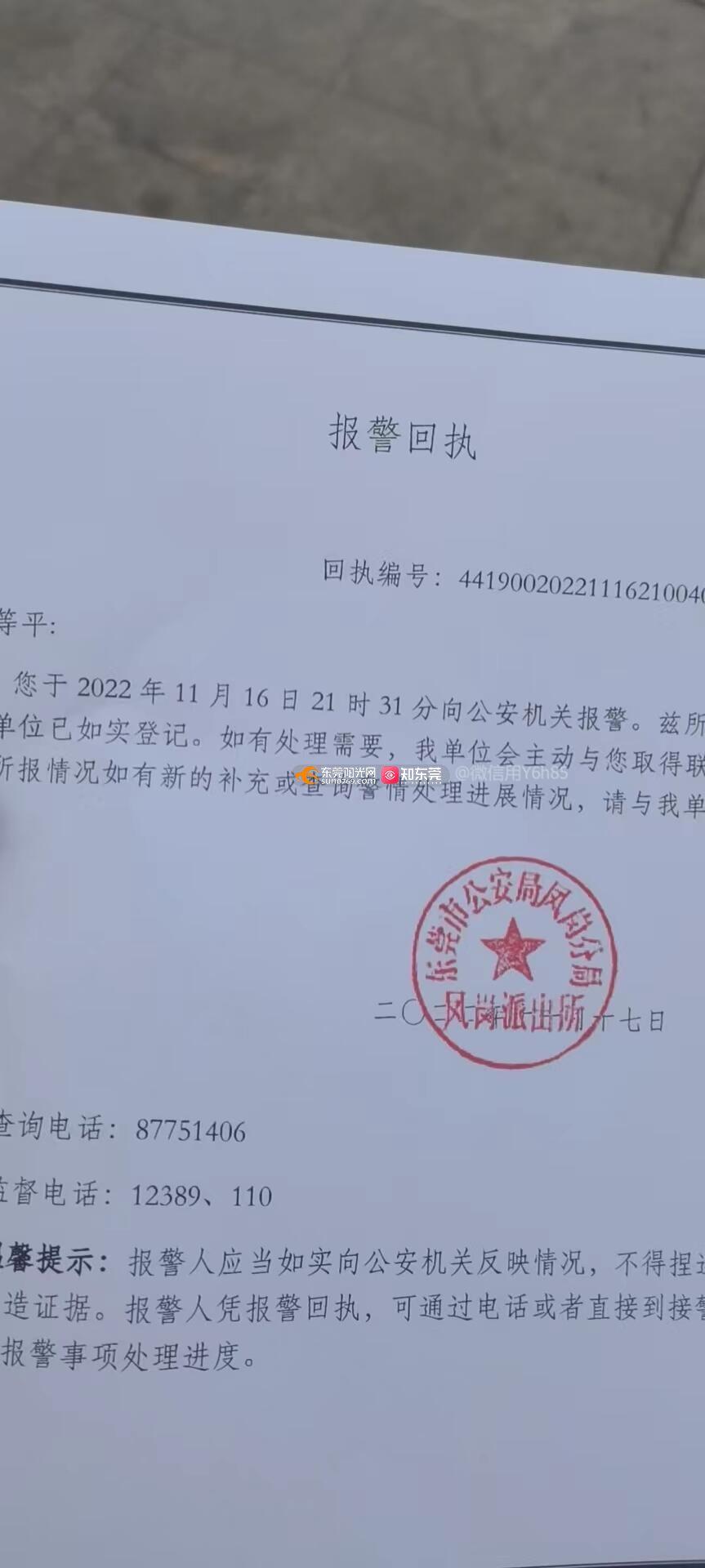 尊敬的市民,您好!您反映的问题已收悉,现回复如下:经我镇公安分局核查, 2022年11月16日21时33分许,分局凤岗派出所接到袁等平报案称,其电动自行车被盗窃。2022年11月16日17时许,其将上述电动自行车停放在东莞市凤岗镇五联村星辰工业园门口,2022年11月16日21时许,其发现电动自行车不见了,随后打电话报警。凤岗派出所接报后,立即安排警力展开调查取证,治安受理该起案件,案件编号为A4419745000002022116155,目前案件正在进一步侦查中。感谢您对我们工作的理解和支持!