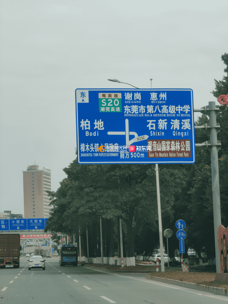 莞樟路樟木头段石新路跨线桥路牌错误