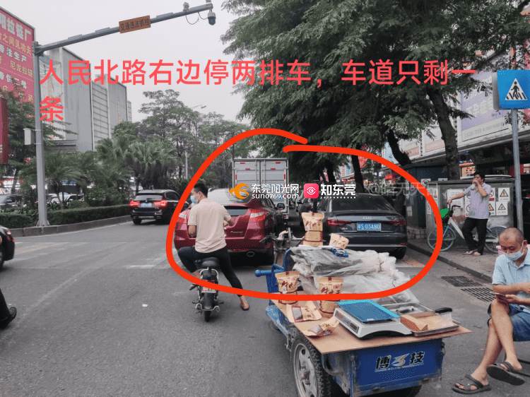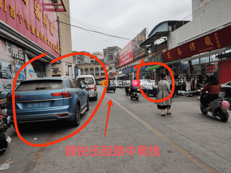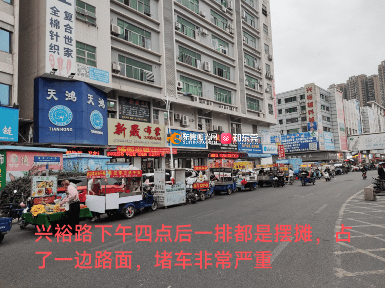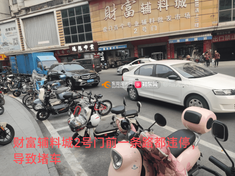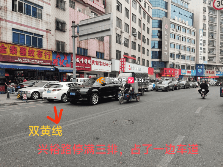 虎门布料市场周边路段,两边占道停车,占道摆摊,每天下午4-7点严重拥堵