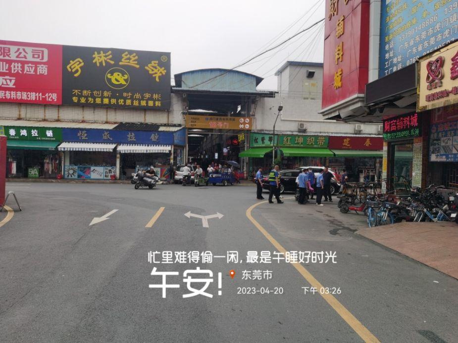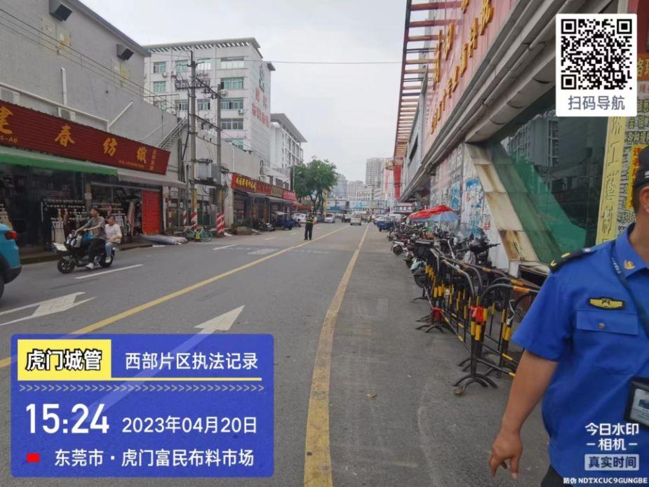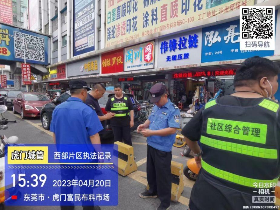尊敬的市民,您好!你反映的问题已收悉,现回复如下:2023年4月20日,我分局派出西部站执法人员联同社区工作人员到虎门镇富民布料市场进行调查,执法人员现场对占道经营的店铺和流动摊贩进行整治,责令店铺在规定黄线范围内经营,落实做好门前三包责任制,并对小贩进行劝离。我分局已要求属地社区做好相关监督检查工作。如有城市管理方面的问题,可致电分局24小时值班电话:89328222或通过微信公众号“东莞城市管理”进行反映。 感谢您对城市管理工作的监督与支持!同时,整治车辆违法停放是公安交警的常态化工作之一,近期我镇交警大队已多次到人民路布料市场路段执法,且人民路为虎门镇严管路,已安装违停抓拍。今后我队将继续加强该路段的管控力度,依法处理违反交通法律法规的车辆,确保过往车辆有序通行。虎门交警大队举报电话:0769-83663122或0769-88825122。感谢市民对我镇交通组织工作的理解和支持。最后,博涌社区表示会加强对以上路段的巡查。