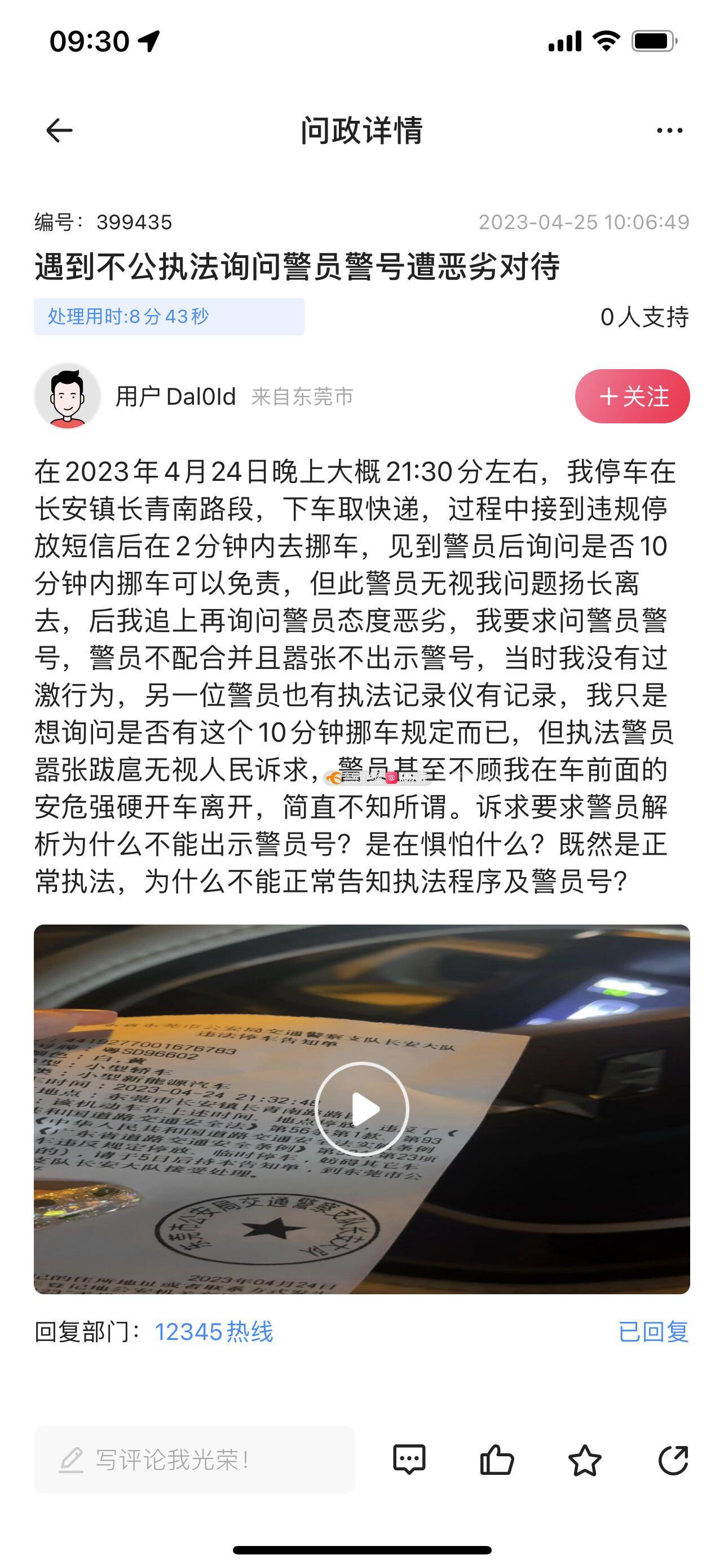 违法停车我是认的,我首次违停不扣分不罚款,妨碍不了我有知情权,投诉回答给我的没回答到重点!请审题!我的问题是当时我只是询问警员有无10分钟挪车免责这个规定,警员无视不回答就走,我上前沟通但警员态度嚣张,我问警员号警员拒绝提供?警员号是公开的,为什么警员拒绝提供?是觉得作为执法者的权利都是凌驾于市民知情权上?我的诉求是请问遇事我想知道执法者警员号是否是正常合法?还是作为市民我就连基本知情权都无然后受没素质的执法者任意蔑视?