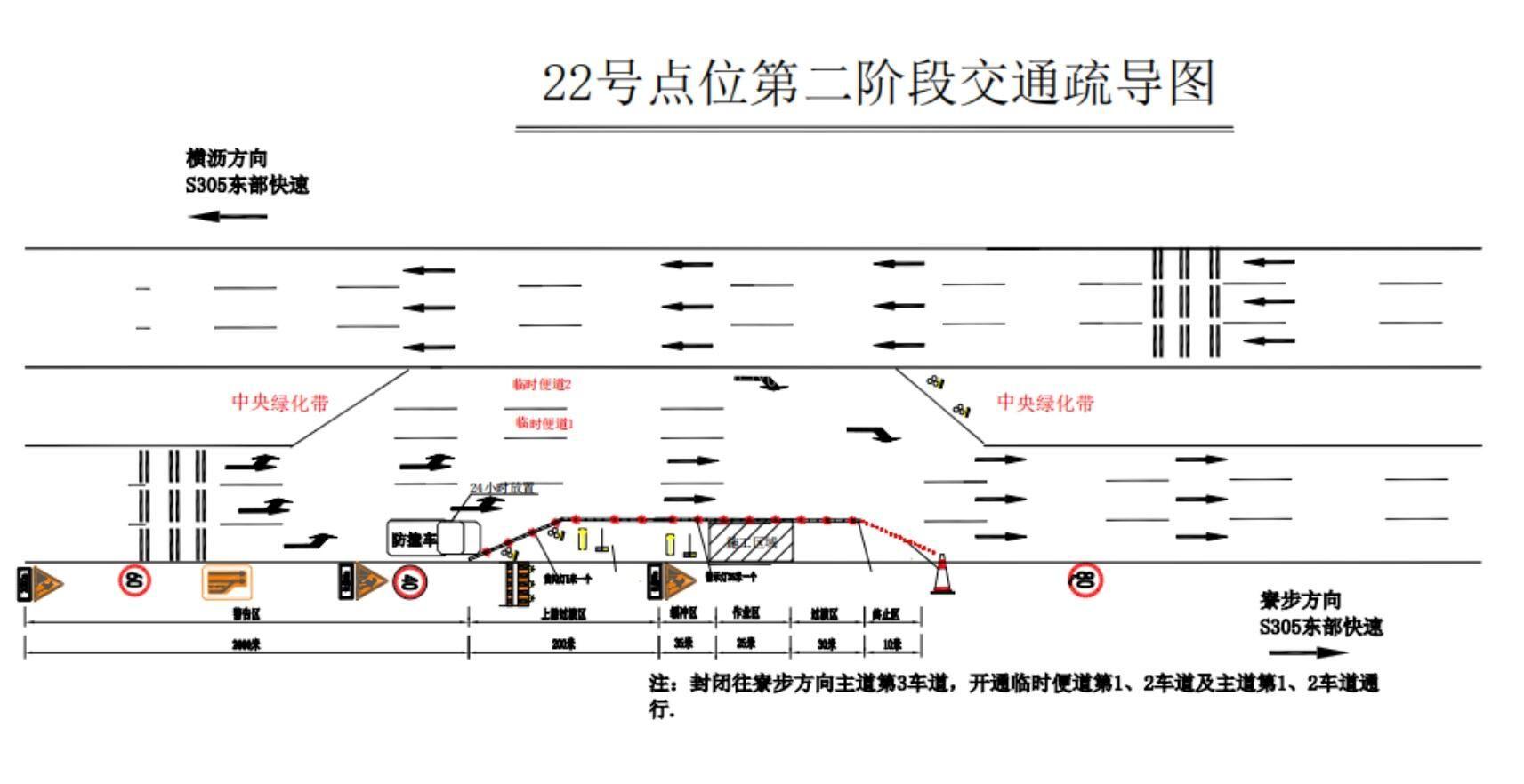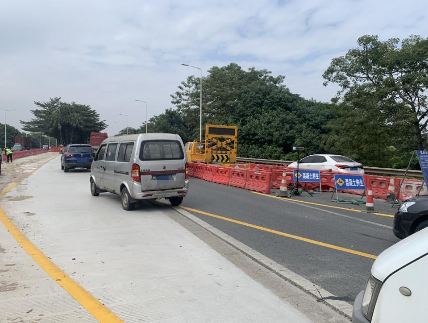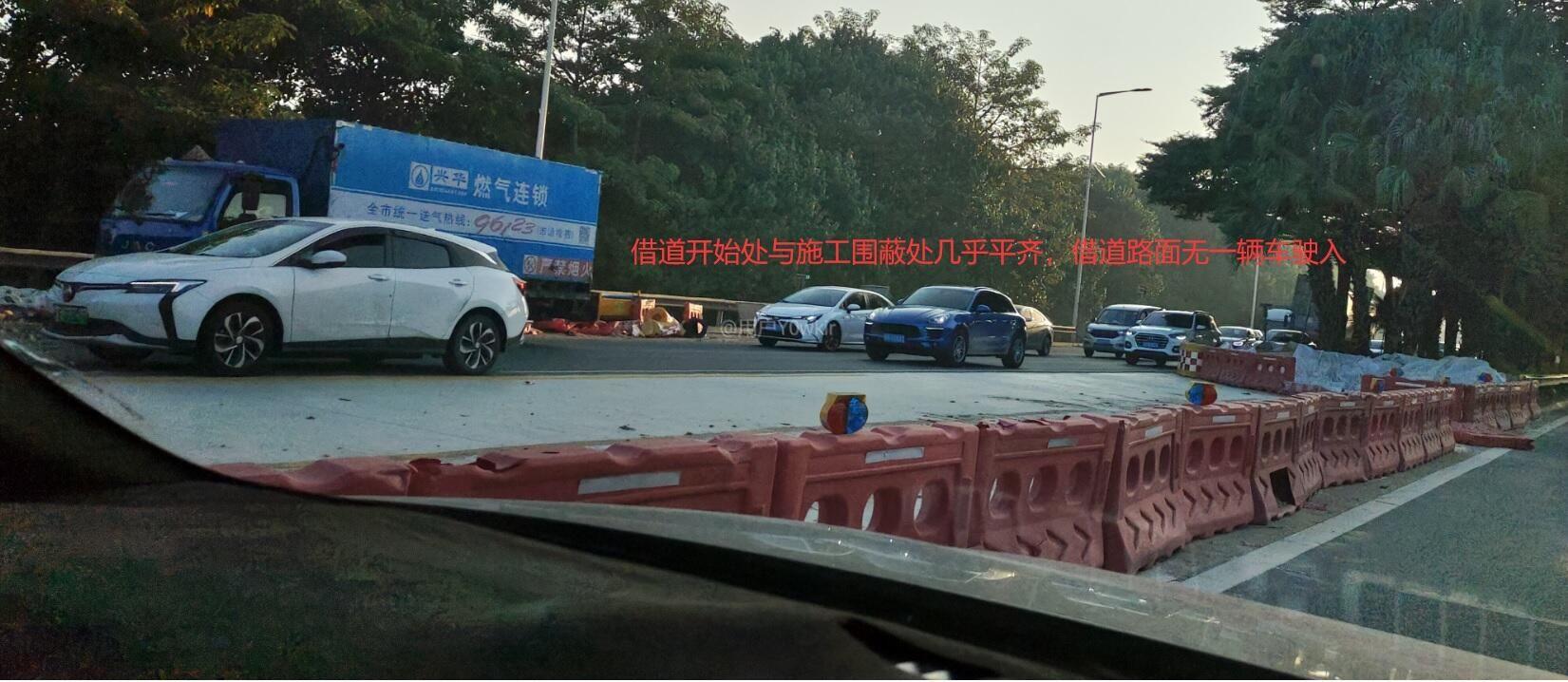 东莞市道路非现场执法点建设项目第22号点位于东部快速寒溪河大桥路段双方向,根据市政府有关工作部署,市公路事务中心将在该路段安装非现场执法系统和卡口抓拍系统,计划于10月14日-12月28日,分阶段围蔽车道进行施工。 按需要施工无可厚非,但是现场借道疏导未免太过于敷衍。借道路面长度与施工长度几乎一致,过路车辆都需要进行90度左转借道。现场借道路面每天没有一辆车进入借道路面。导致现在整个东部快速每天堵车长龙六七公里长。而且如果有车借道反而更容易发生安全事故。借道路面能否延长,并在更远处做引导进入借道车道。 图中为现场施工图片,以及施工计划图