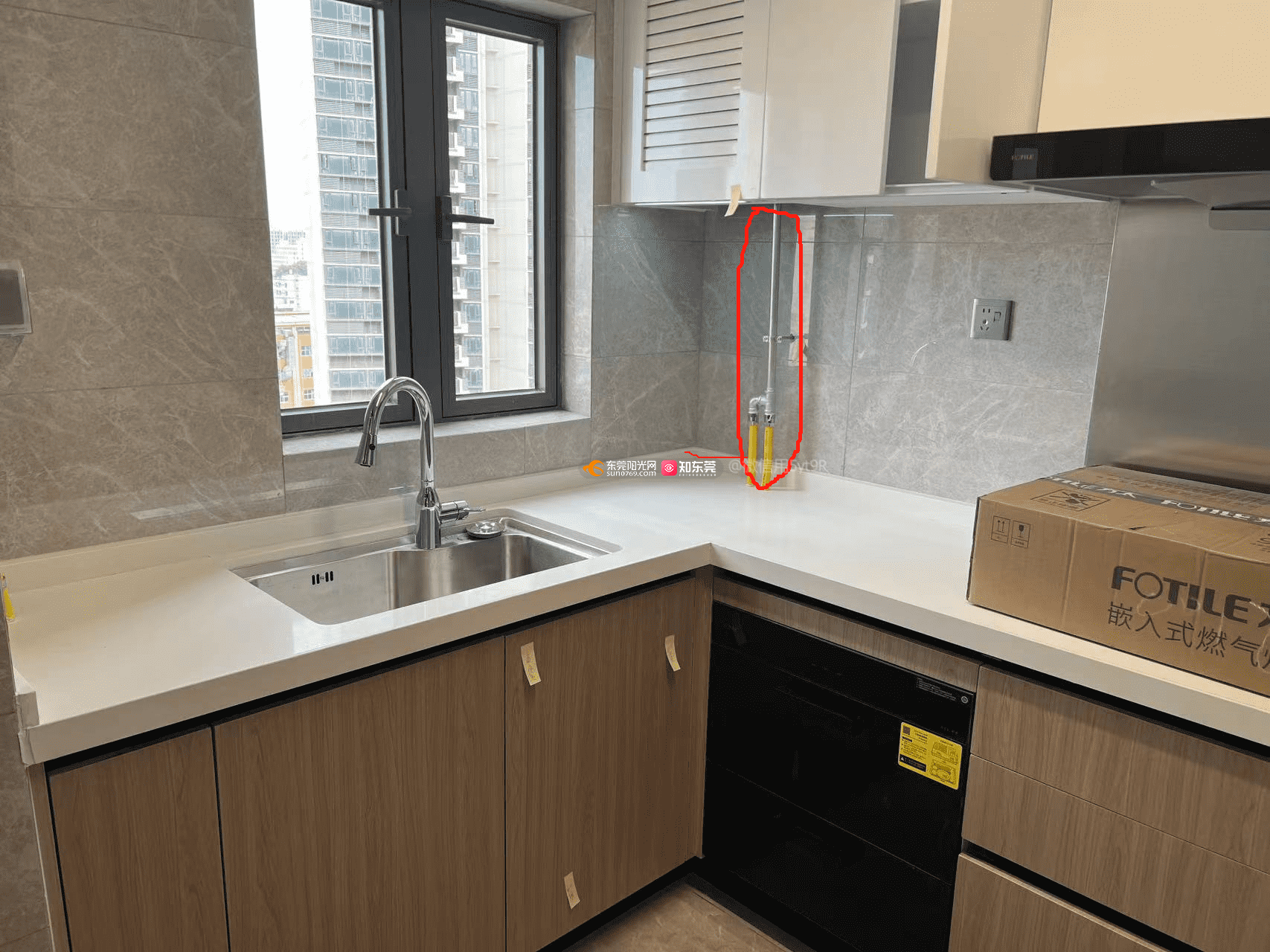 应该这样理解: 1.货不对版。从松湖云禧的样板房来看,煤气管道应采用价格较贵的管道暗装方式,但实际交付时却采用了价格便宜的管道明装,货不对版,开发商保利项目公司存在欺诈消费者行为。 2.存在严重安全隐患。松湖云禧的燃气软管裸露在燃气灶附近,在地方狭小的厨房中,刀具等容易碰伤,极容易出现燃气泄露事故,存在严重的安全隐患。 要求开发商保利项目公司彻底整改,赔偿损失(包括但不限于精神损失费等)