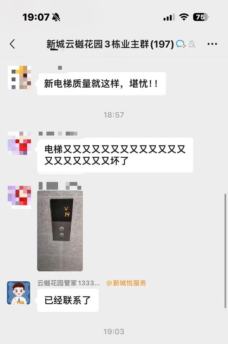 石碣镇新城御珑公馆电梯隔三差五频繁出现问题。