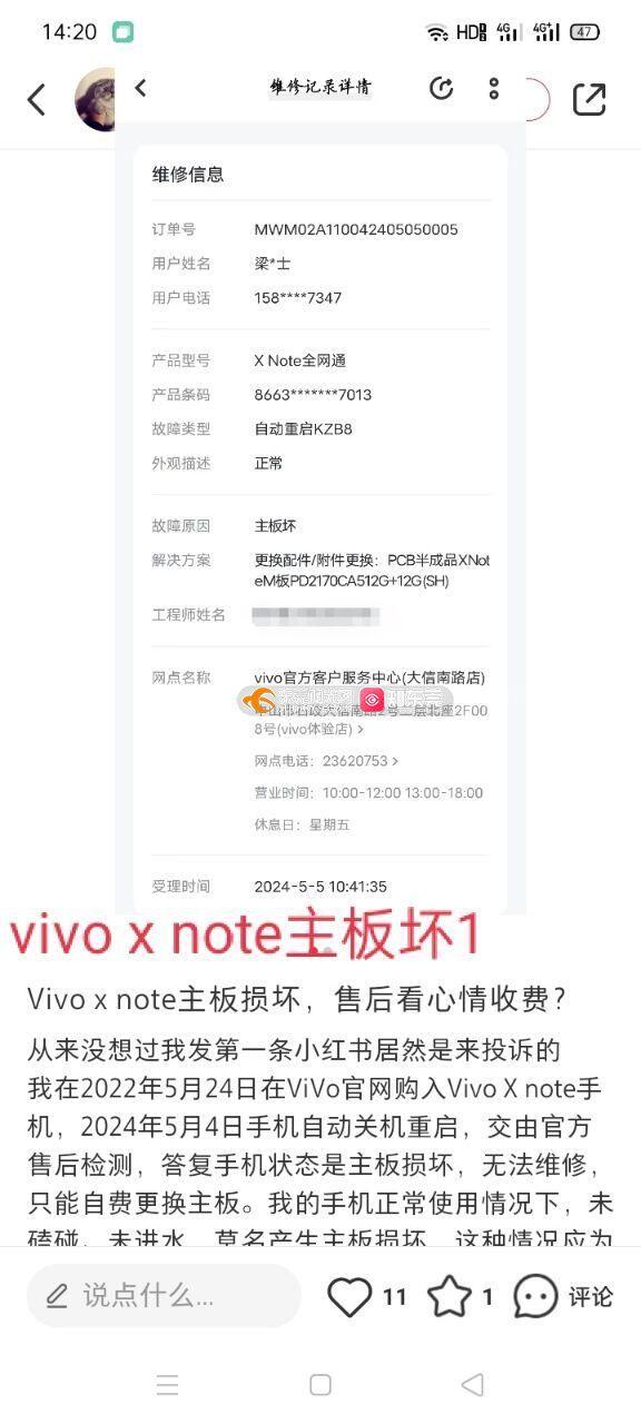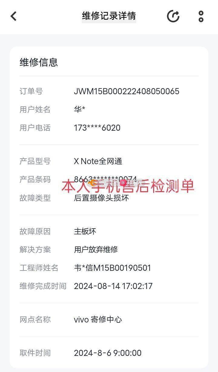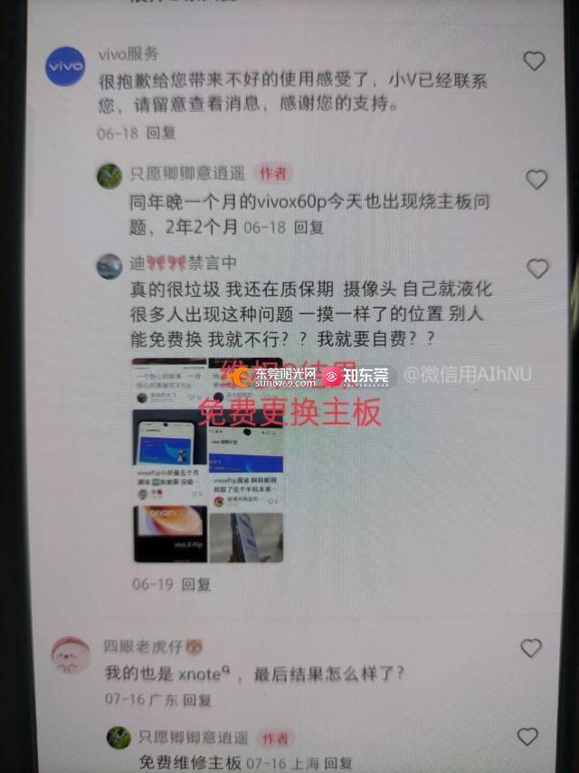 本人2023年1月购入vivoxnote12+512手机,2024.7.31手机摄像头打不开闪退,8.6寄回vivo售后中心检测,反馈升级系统后摄像头能正常使用一下很快又不行,反复测试后检测摄像头没问题,是机器主板虚焊导致摄像头无法使用显示手机主板故障,要求自费699更换主板。 该手机购入价格6999元,为vivo品牌高端机,保质期间经常出现摄像头打开失败,咨询客服也是以重启摄像头为由打发,都是管用几天又无法使用,使用期间无任何人为损坏,刚过保质期半年摄像头无法正常使用,刚过保质期售后处也是能使用一会后面又不行。6999的vivo手机用了一年半摄像头经常用不了,试问他们的产品出厂真的合格吗,合着6999买个电子垃圾,一而再再而三的出问题,官网除了报歉就是报歉,不是说你们的品控很好吗?为什么会出现这种情况,建议你们不要买vivo的垃圾产品了,第一点品控有问题,第二点无法及时解决。 维权发现,该型号网友同样出现该主板问题,但是vivo售后给免费更换主板,且超出保质期一年多,我刚过保半年就以三包借口拒绝免费更换主板。 请解释为何区别对待,我的诉求是免费维修主板,停止侵权。