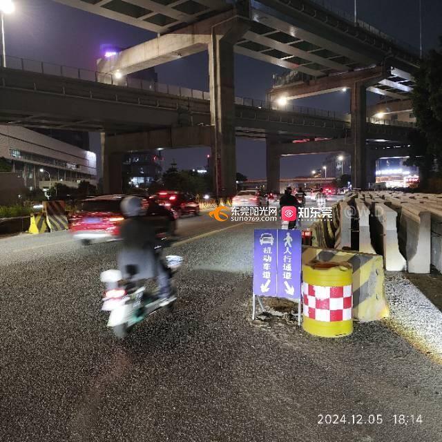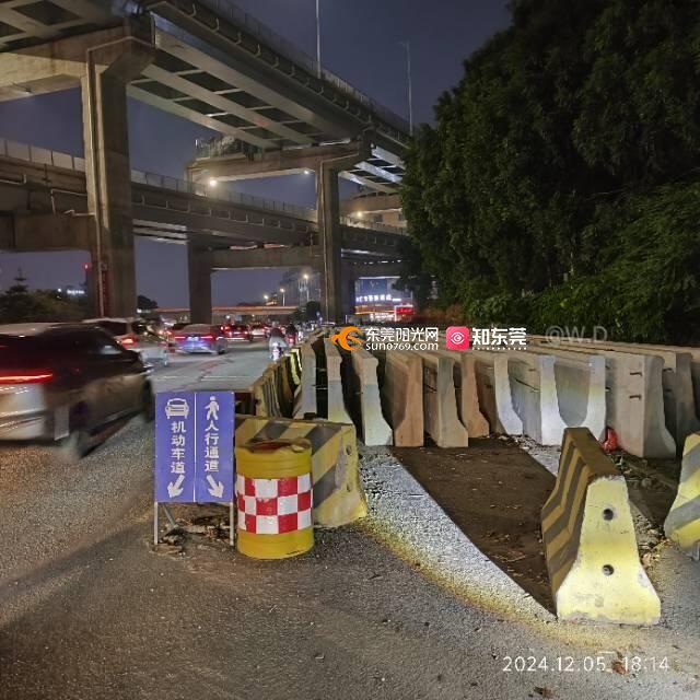 东莞松山湖与石大路,石大立交往寮步方向,位置。施工单位违规施工,将人行道,非机动车道完全封闭,导致行人,非机动车无路可走,被迫上到石大路行驶,且石大路与龙大高速桥底石此路段照明路灯也坏了近一年了,非常危险。 希望引起有关部门重视!