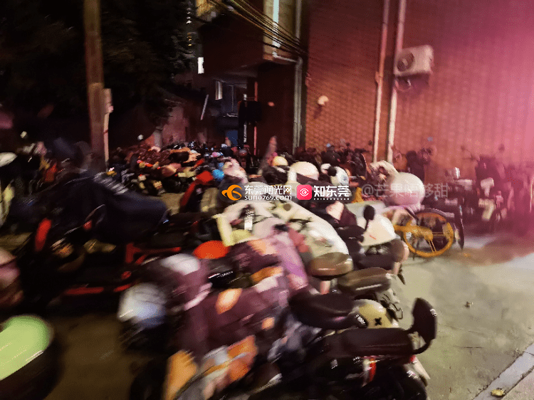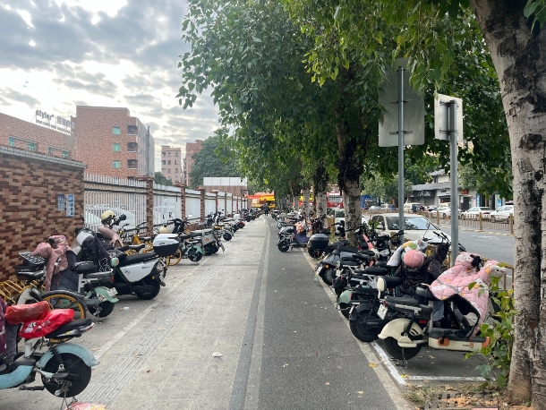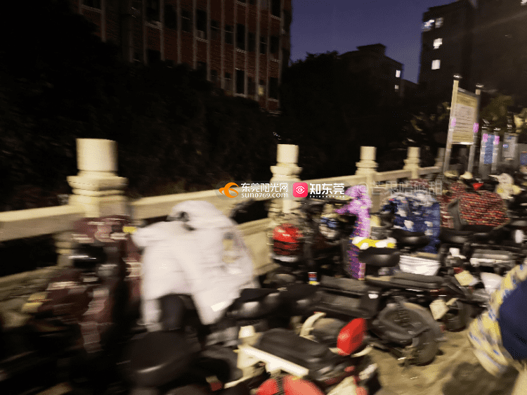 东莞市高埗镇欧邓村华宏眼镜厂对出路面大量电动车违规停放 阻碍通行