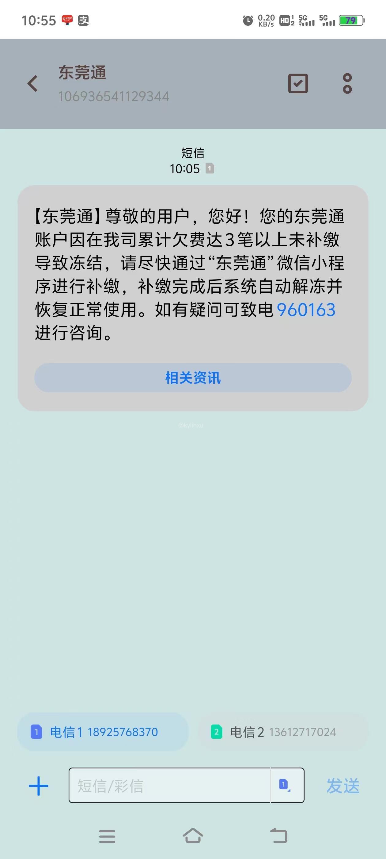 本人近日收到东莞通公司发来的短信(如下图所示) ,内容为本人欠缴2023年乘坐东莞巴士或地铁的欠费,对于此问题,本人有如下疑问需要质问东莞通公司: 1、本人乘坐东莞巴士或地铁都是刷卡乘坐的,刷卡时或过后从来都没有收到过东莞通的任何通知告知刷卡不成功导致扣费失败,并且也一直都可以正常刷卡乘车; 2、近日收到东莞通公司信息显示有诸多扣费失败,需要补缴,这么久远的所谓扣费失败,是东莞通说了就算的吗?打过投诉电话,就是要本人自行去核对,这完全是东莞通耍赖的做法; 3、且不说本人不认可扣费失败的所谓事实,如果当时是真有发生了扣费失败,为何东莞通不能及时通知乘客,这样乘客也能及时的核对是否真的扣费失败了,而不是拖到快两年时间了才通知,难道东莞通的系统是婴儿级别的智能吗? 4、东莞通的客服人员只会机械式的回复乘客的询问,没有提供任何可解决问题的办法,比机器还要机器 本人诉求: 1、要求东莞通公司确实查清事实 2、基于东莞通无赖的做法,本人已补缴了所谓欠款,但不表示本人认可欠费的事实,只是不想给自己造成出行的困扰3、要求东莞通公司在查清事实的基础上还本人事实的真相 4、如果东莞通的系统是如此的“智能”,本人建议能更换或完善这个系统,以免给更多的无辜乘客造成困扰